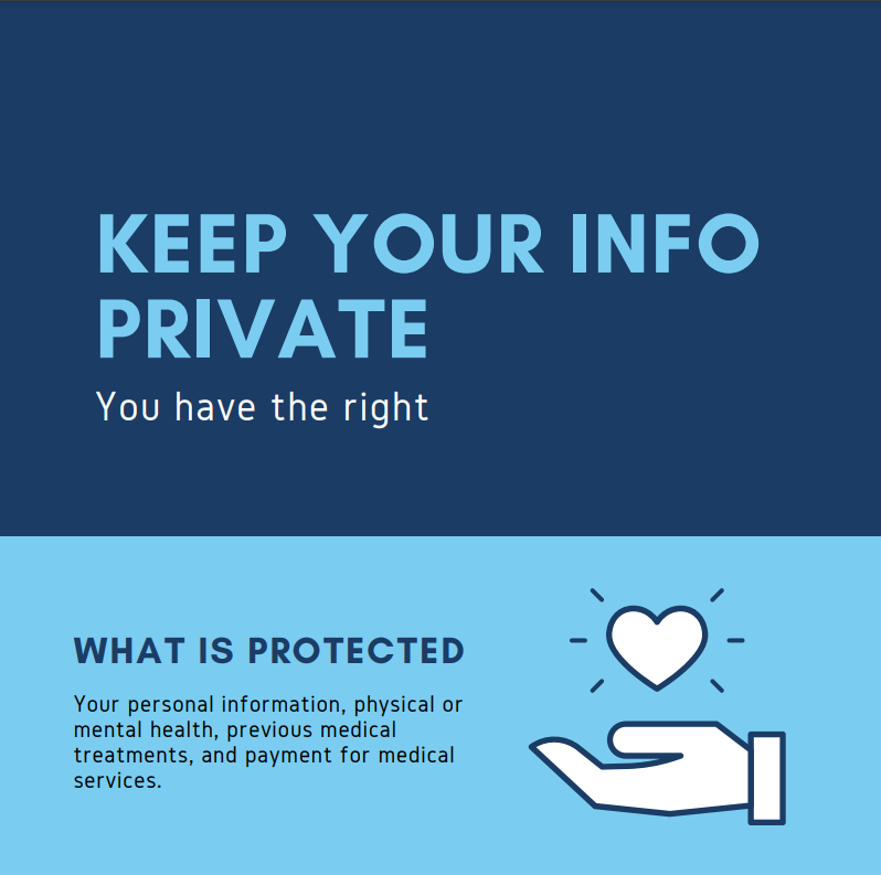 One visual, created for display in a waiting room, explains patients’ rights under the law and outlines what information is protected, and when and why information could be shared. A second visual, created for internal reference, reminds employees of HIPAA do’s and don’ts, such as what type of patient information cannot be disclosed, and when and how patient information can be legally and safely shared.