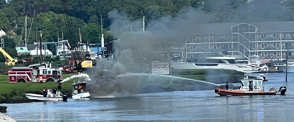 Gloucester Police Boat began a direct attack on the flames. The Gloucester Harbormaster towed the vessel back to shore, where Gloucester Fire extinguished the fire. The U.S. Coast Guard provided assistance in managing the waterway while these efforts were on going.