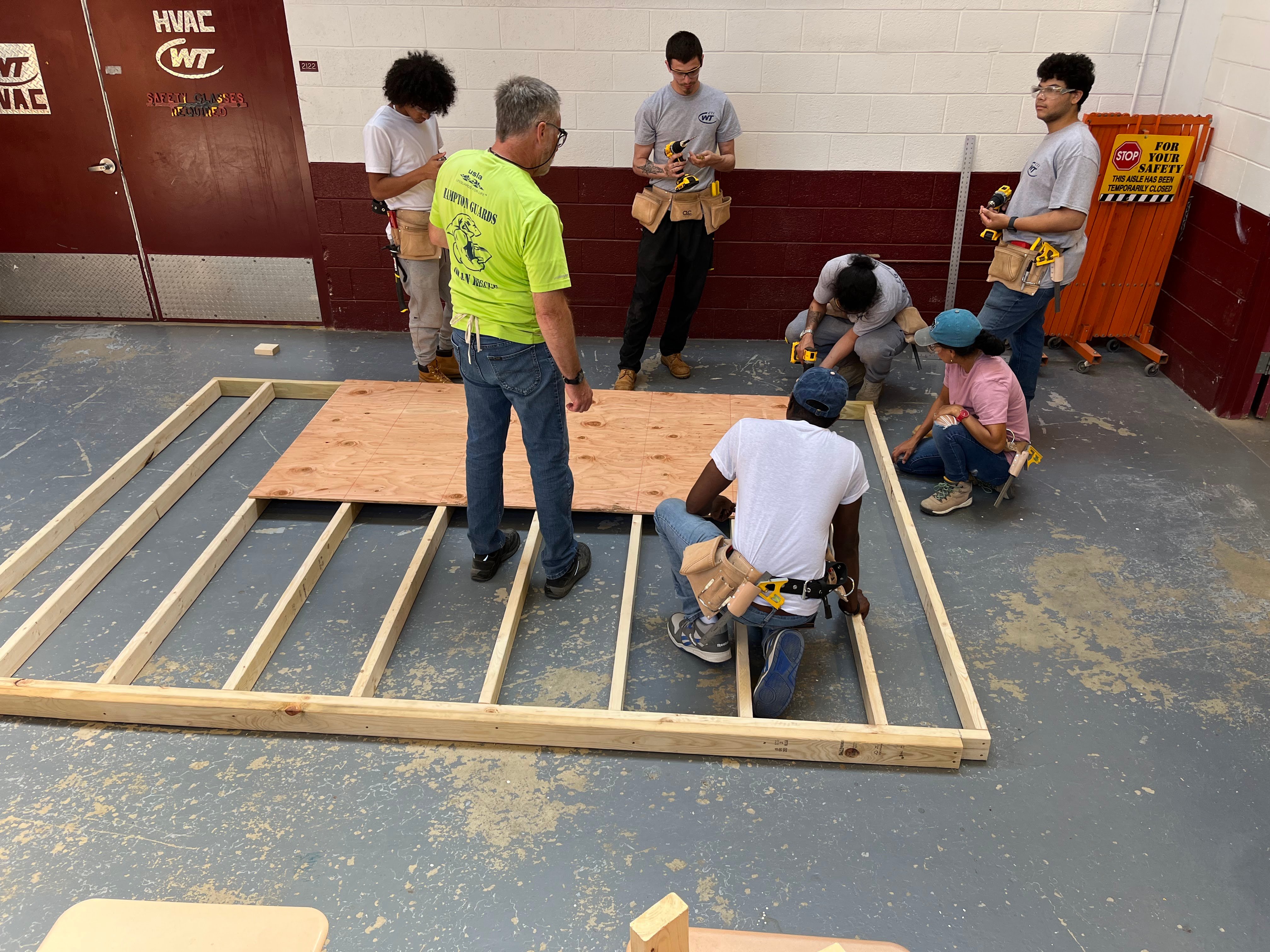 Carpentry students collaborated with Computer-Aided Design (CAD) students to create a design for the new shed. All of the supplies needed for the build were purchased through a CTI grant, courtesy of the state, used to fund the program.