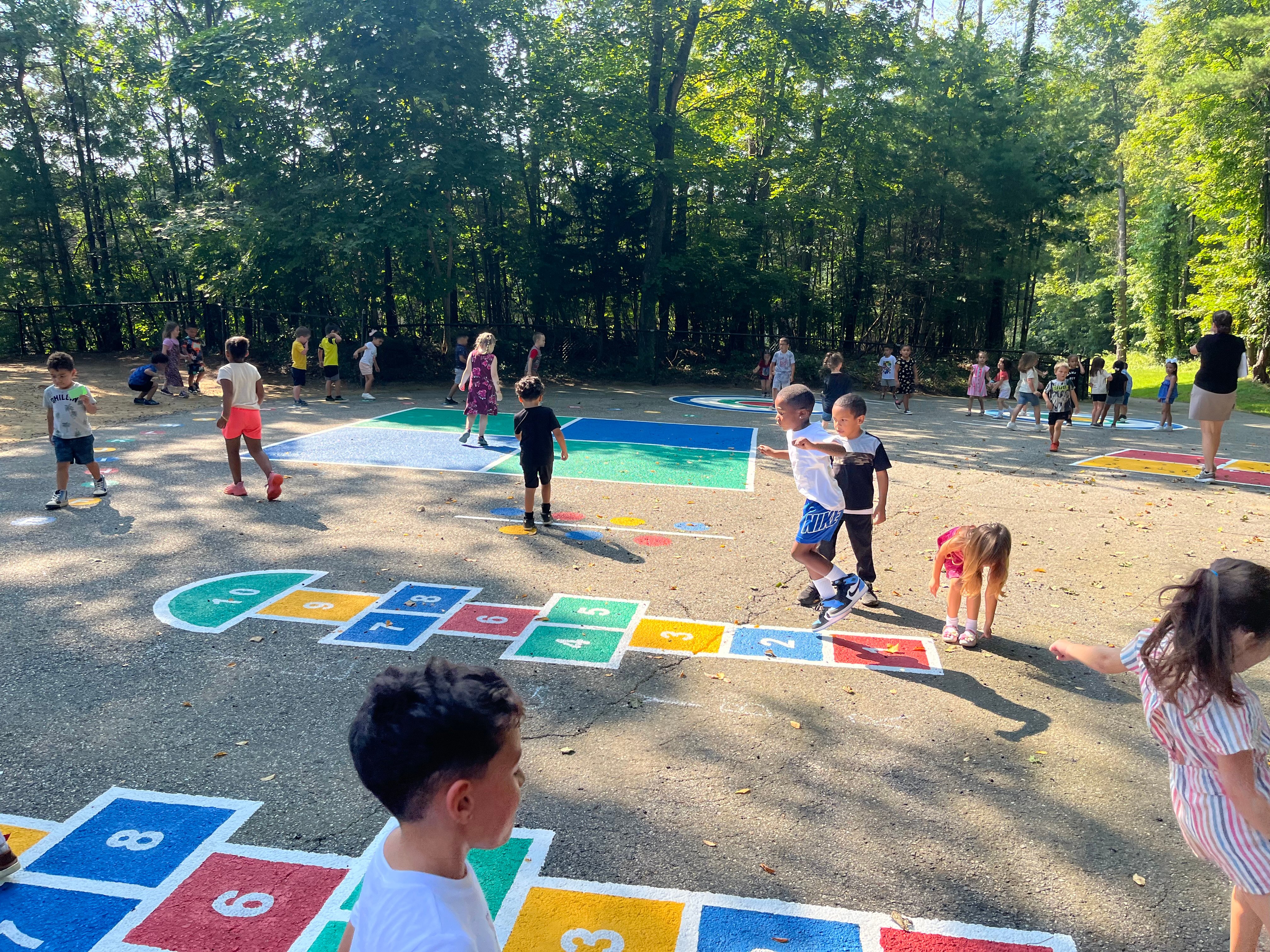 Students were welcomed back to school on Aug. 28 and 29 and explored a renovated blacktop activity space. The new blacktop space includes games such as Hopscotch and Four Square, alphabet letter paths, and more.