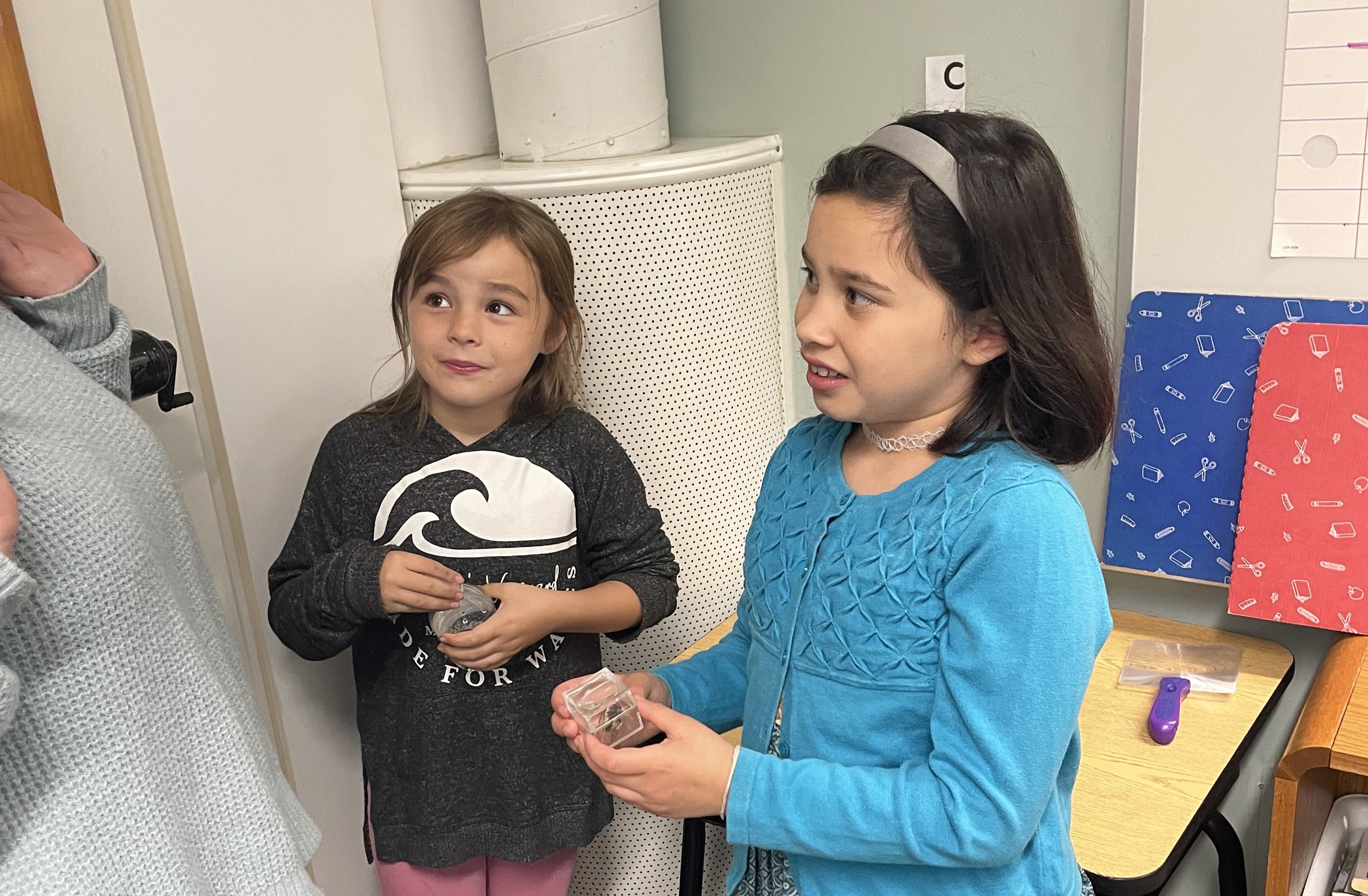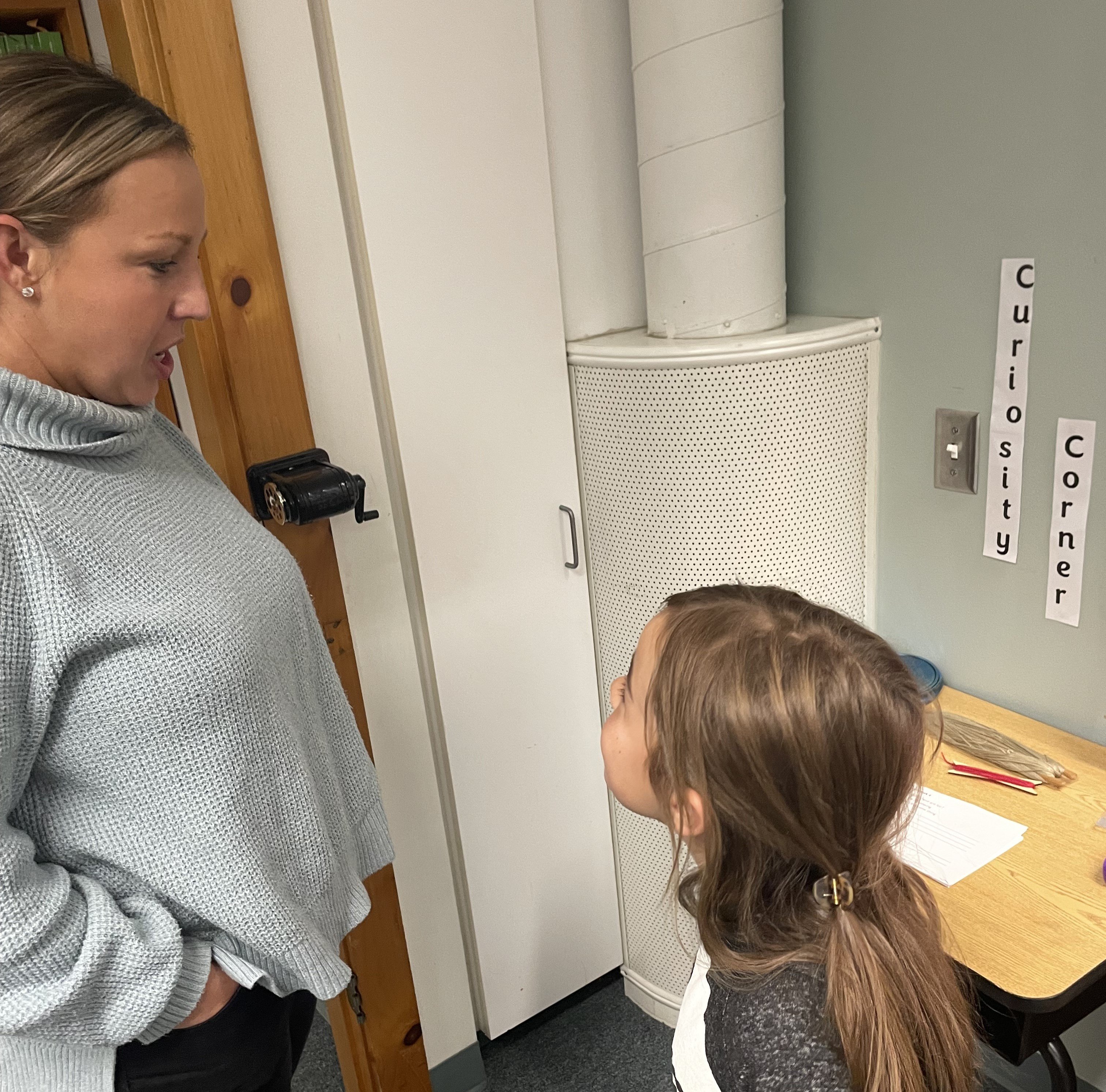 Families also explored Teacher Laura Doell’s Curiosity Corner, where students have been asking questions about unfamiliar objects and working to answer them. After asking their questions, they conduct research to learn more about the object. Students recently delved into the development and history of the compass.