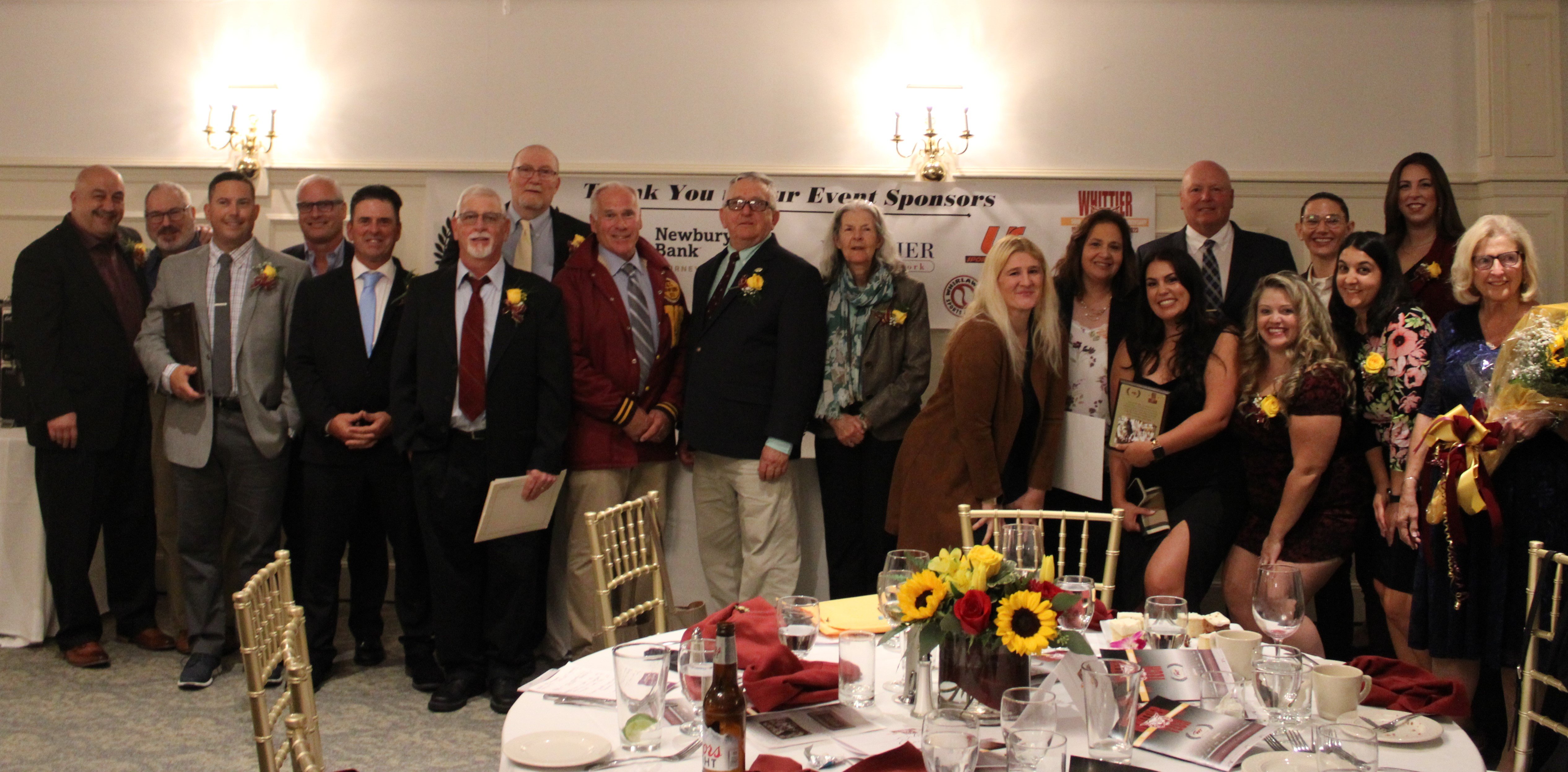 Whittier Tech thanks all of those involved in the success of this event including the Hall of Fame Selection Committee, President Kevin Bradley, Secretary Roxanne Grover, and members Cheryl Begin, Joseph Boland, Clint Clay, David Cunningham, Beverly DeSalvo, James Donahue, Janice McNulty, William Yameen, Michael Young, and Superintendent Lynch; Sponsors, Newburyport Bank, Complete Cleaning Co., Inc., Whittier Health Network, U-Save Sports and Apparel, Whirlaway Sports Center, and Riddell; Melissa Parino at Hampstead Print & Copy for her work creating the programs for the event; Angelo the Florist; Marcia Shoemaker at Newburyport Awards and Engraving, Haverhill Country Club Coordinator Shelby LeBlanc and her staff; members of Take Two Mike Ruggelo (retired Whittier special education teacher) and Eric McFadden, who performed at the event; and Whittier Librarian/Media Specialist Rich Porcelli for his work with video.