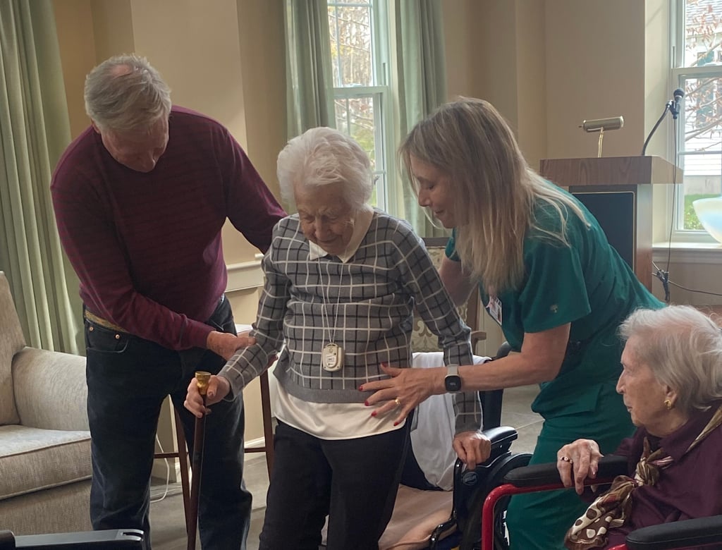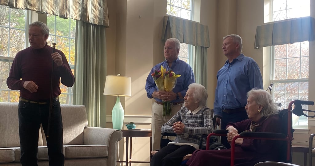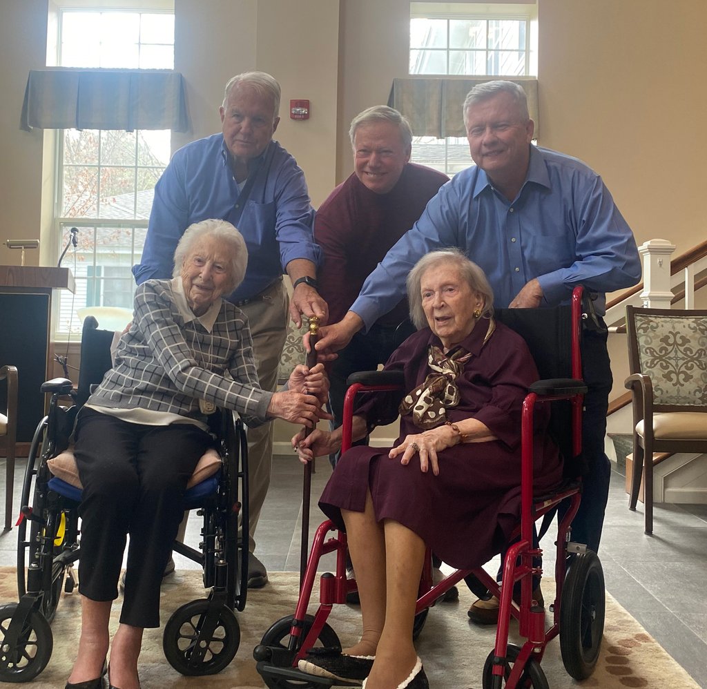 The ceremony was held at the Webster in Rye, where Long and Cronin are both residents. Town of Rye Select Board presented the cane to Cronin and Long in front of staff, peers, and family.