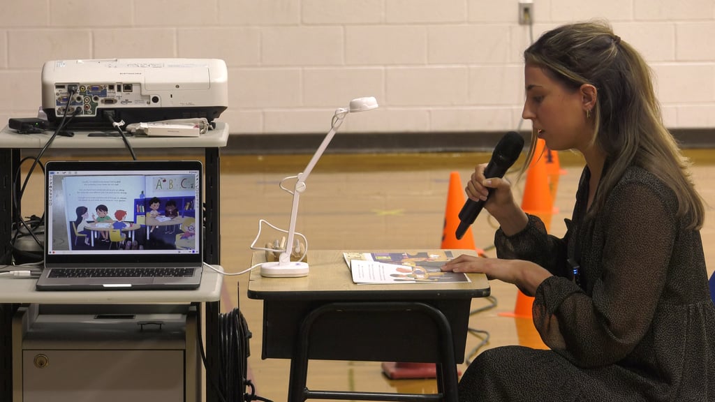 Carlson led students in a song that promotes kindness, “Build a House,” and Whitney read “Acceptance is my Superpower” by Alicia Ortego – a story that teaches children that differences should be celebrated – aloud to the audience.