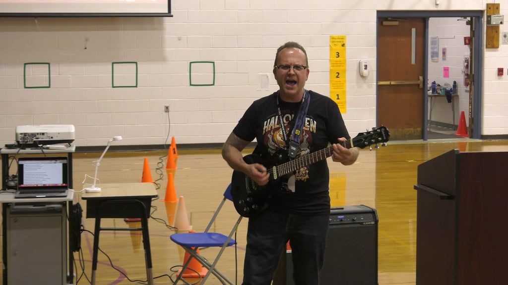 Various staff members presented during the ceremony, including Principal Saddler, Assistant Principal Elizabeth Henderson, School Counselor Emily Whitney, and Music Teacher Gus Carlson.