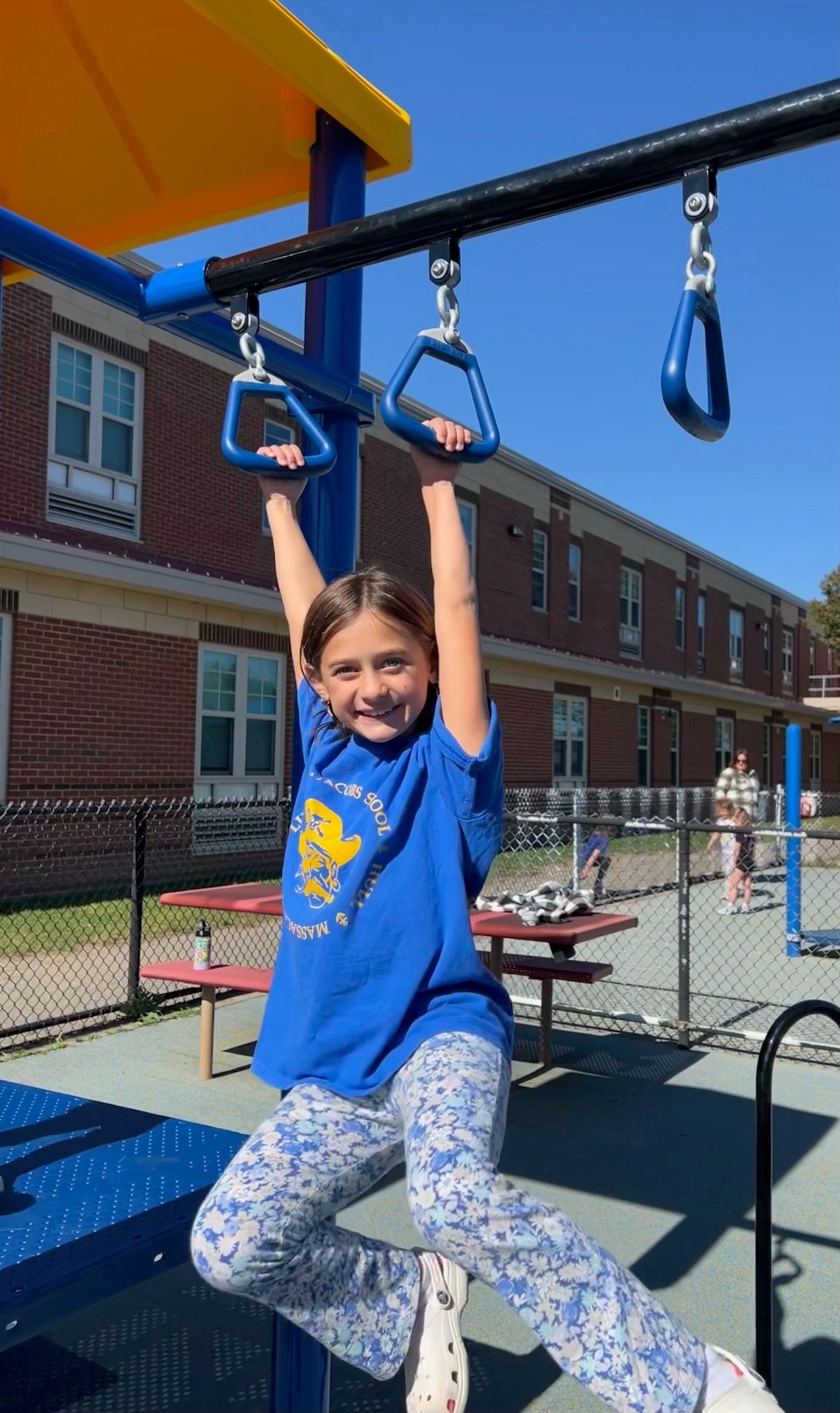 As part of the newly renovated outdoor space at the Jacobs School, monkey bars and monkey bar rings were installed to help students develop strength, coordination and dexterity.