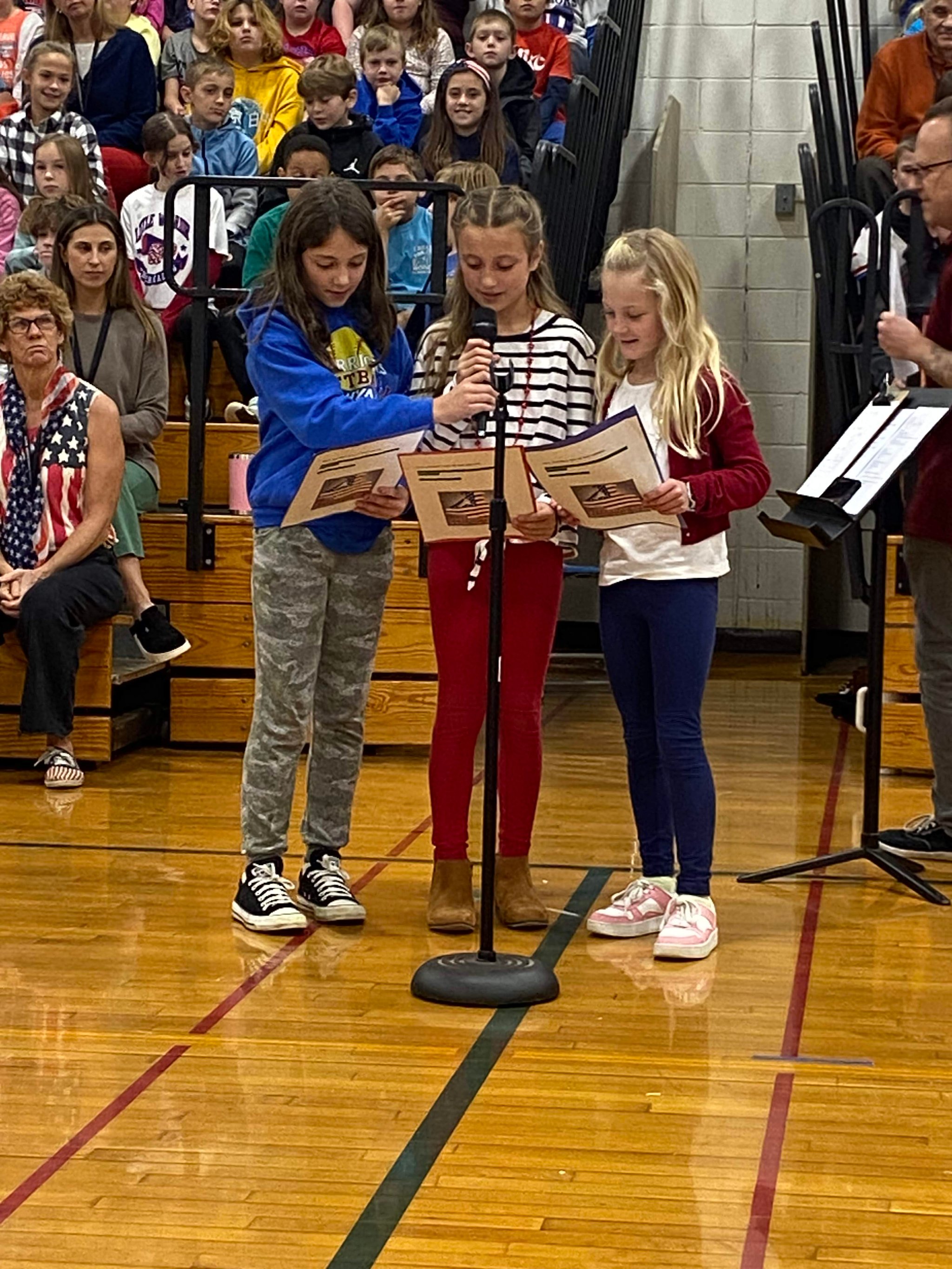 Students in the band and chorus performed patriotic songs, including the National Anthem, Our Country Tis of Thee and America the Beautiful with the instruction of Music Teacher Gus Carlson. The students also presented poems and stories to veterans in the audience and prepared artwork for them to take home.