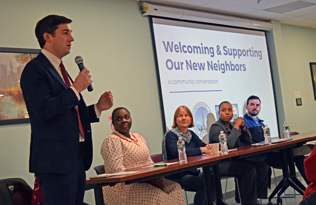 Town Manager Mangiaratti told those in attendance that Making Opportunity Count will be on site at the shelter 24 hours a day, seven days a week, providing supervision and assistance to migrants.