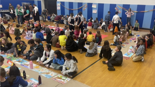 Each grade level sat together at “tables” made from different colors ofbutcher block paper. Each grade brought in one snack for their peers during the feast to go along with their lunch, turkey sandwiches and pumpkin bread provided by the cafeteria.