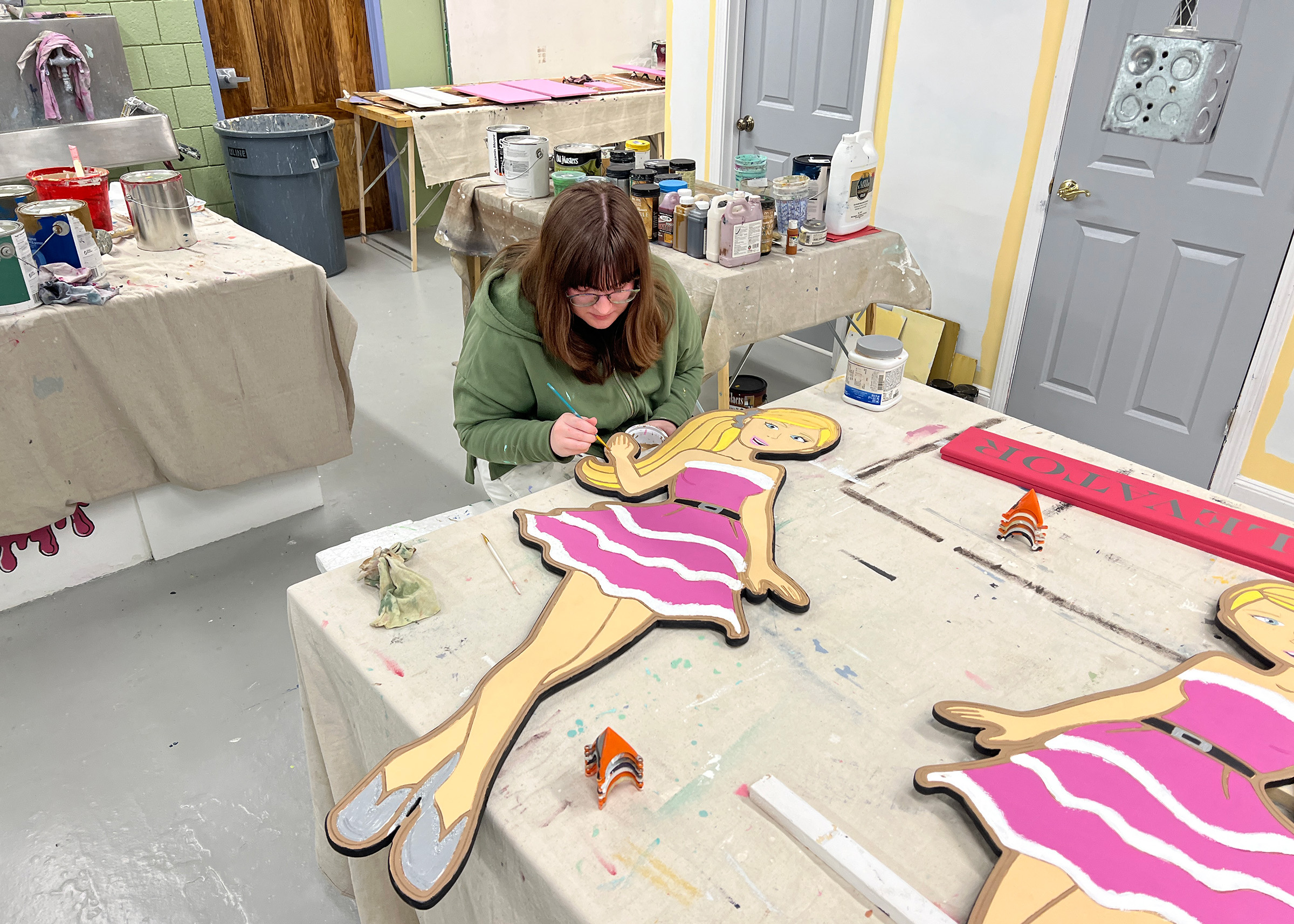 Instructor Mike Donahue’s Painting and Design students were a key to the effort, as the Barbie-themed float required lots of pink colors and multi-tones which made for a fun project for them.