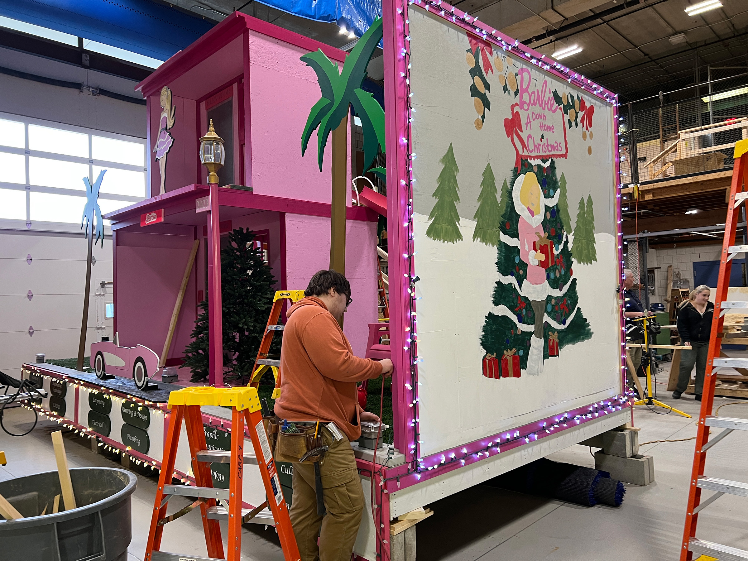 This year’s theme, Barbie, was selected because the Barbie movie was such a big hit this summer, and because Carpentry Instructor Patrick Couillard felt crafting such a multi-colored float would be an interesting challenge for students.