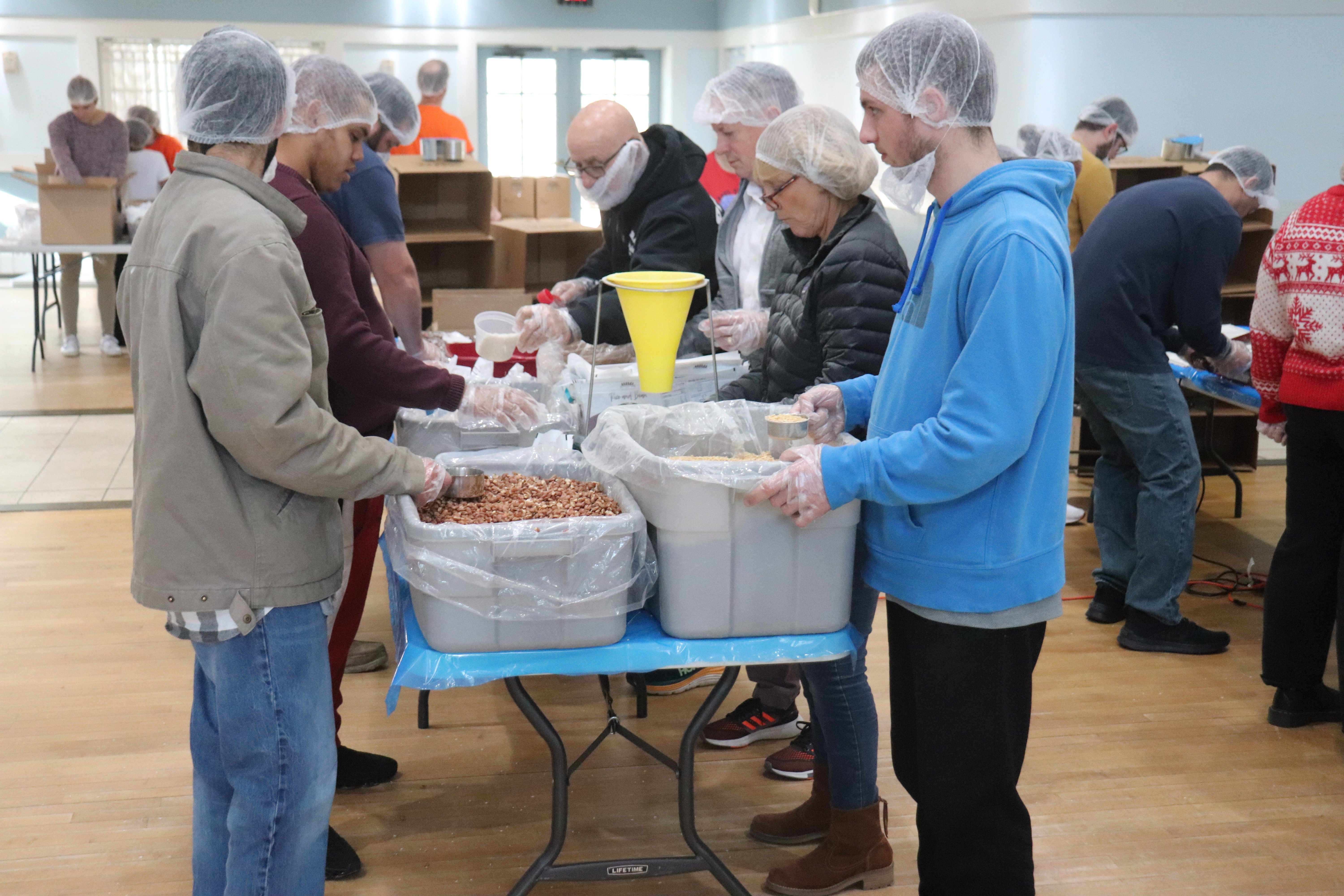 On Wednesday, Dec. 13, 10 students from SMEC’s Transitional Services Program and volunteers from the SMEC’s Supporting Adults for Inclusive Living Program (SAIL) spent the morning packaging meals ready to eat at the Fort Taber Community Center in New Bedford.