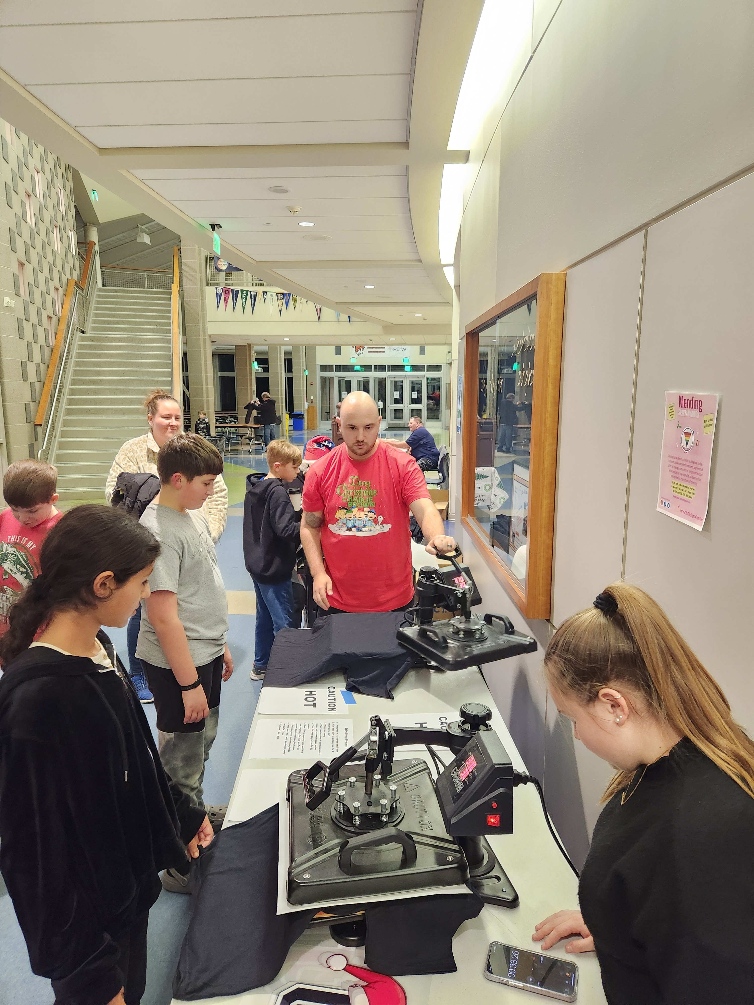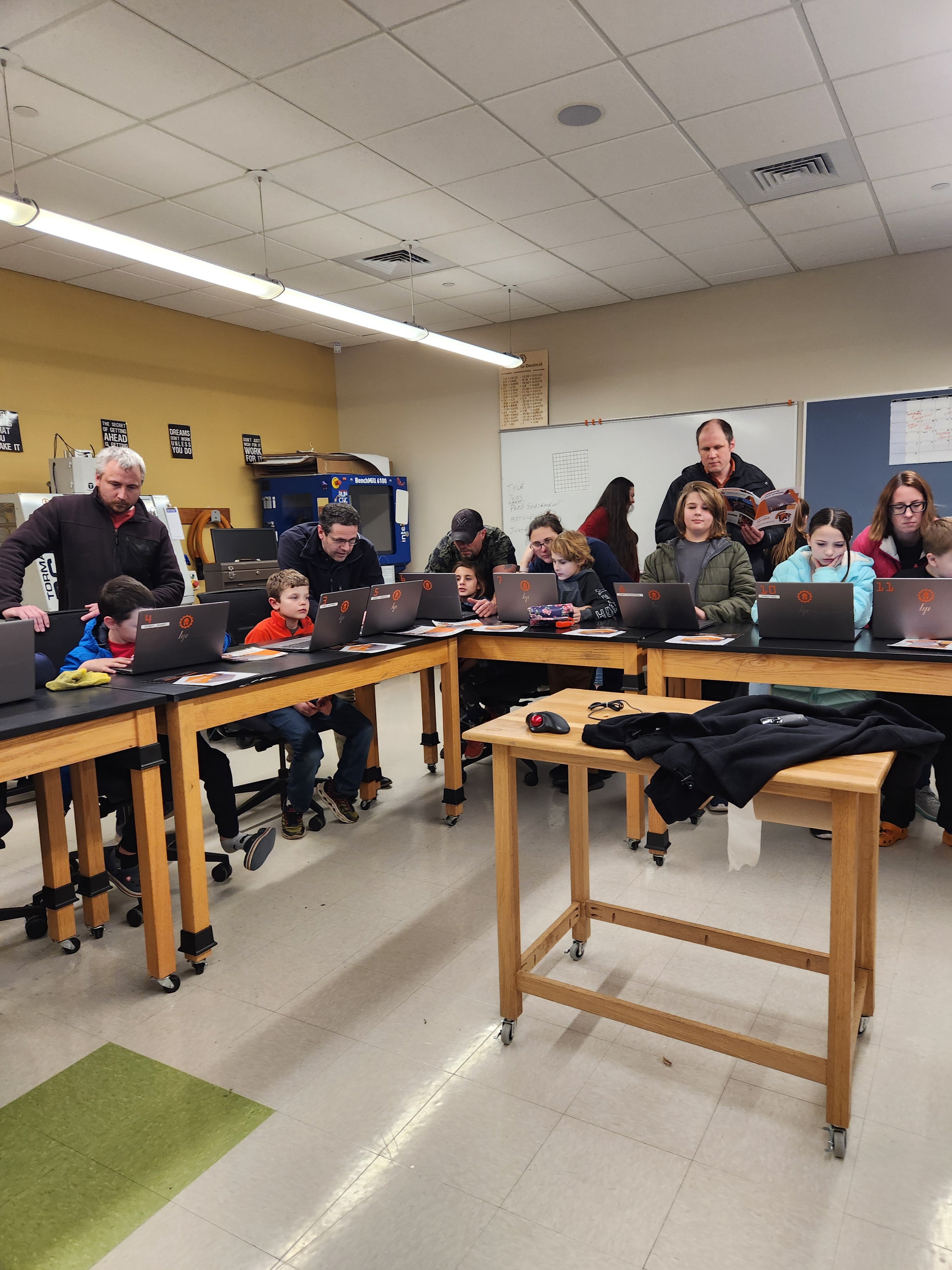 Throughout the night, approximately 40 students and parents worked on designing holiday ornaments using laser engravers and 3D printers, designing and printing holiday cards, and pressing original t-shirts to take home with them for the holidays. Attendees also enjoyed cookies and cocoa prepared by UHS Consumer Science and Hospitality programs.
