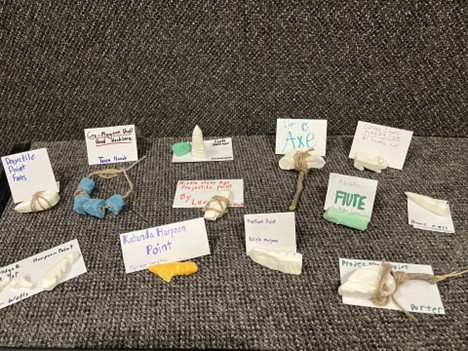 Students created their own Paleolithic Era tools using soap, pencils, rocks, and popsicle sticks, learning the skill and creativity early humans had developed.