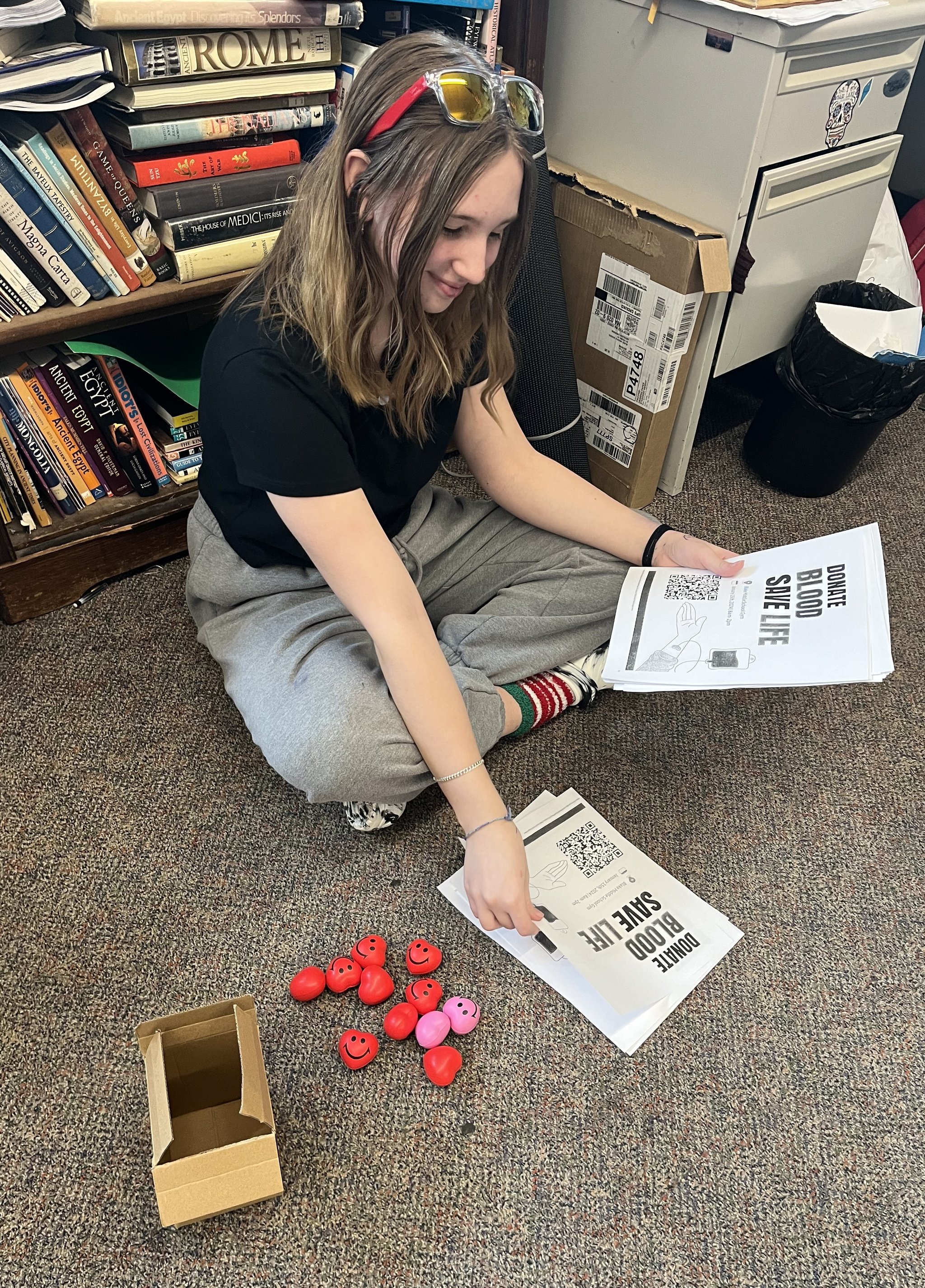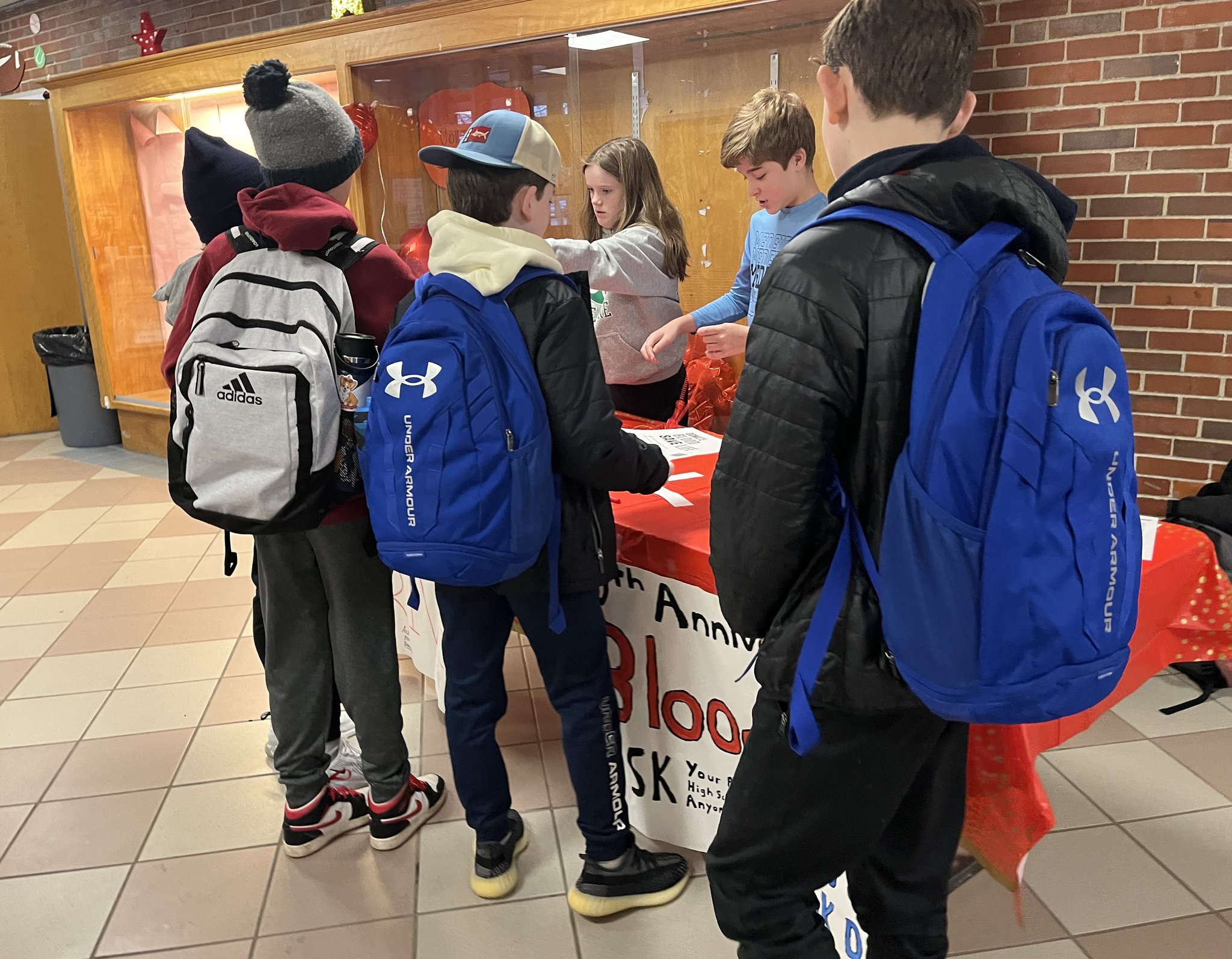 This year, the Blood Drive Committee included 20 middle school students and eight high school students who met weekly from October to January to plan for the event. Leading up to the blood drive, the committee helped recruit donors by making signs, posters and presentations that encouraged fellow eligible students to sign up and talk to their family members about donating. Committee members also followed up on appointments to ensure donors knew they had a spot in the day’s donation schedule.