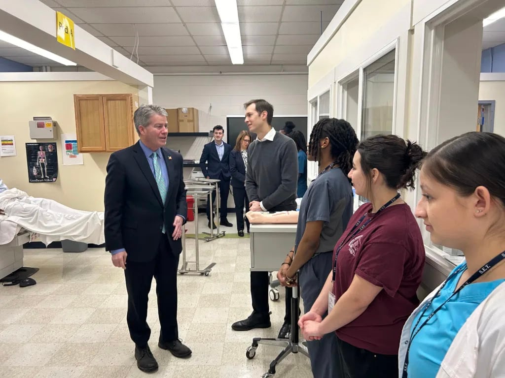 Throughout the morning, Congressman Auchincloss toured the school’s medical simulation laboratory and spoke to the Medical Assisting Students.