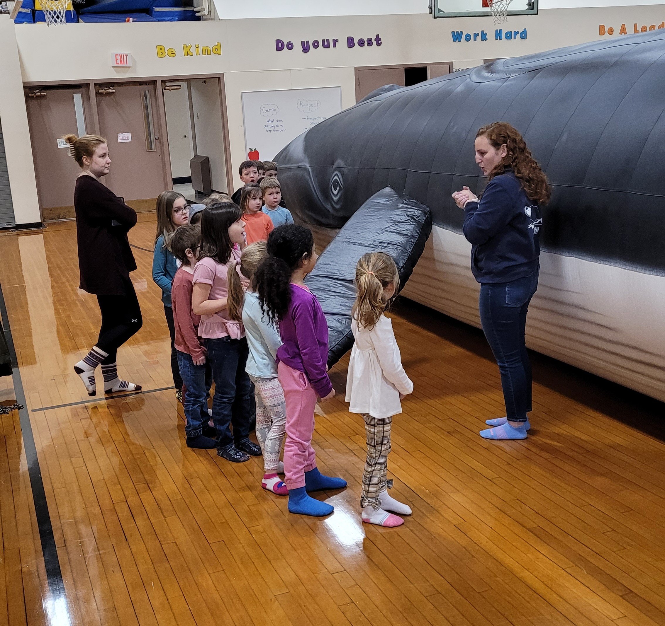 On Jan. 31, Peterborough Elementary hosted the Blue Ocean Society for Marine Conservation of Hampton and its 65-foot inflatable fin whale named Ladder.