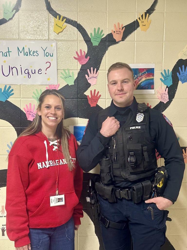 In addition to Officer Kearns, Officer James Fitzgerald serves as the SRO at Narragansett High School and Officer Ajane Scavone serves as the SRO at Narragansett Elementary School.