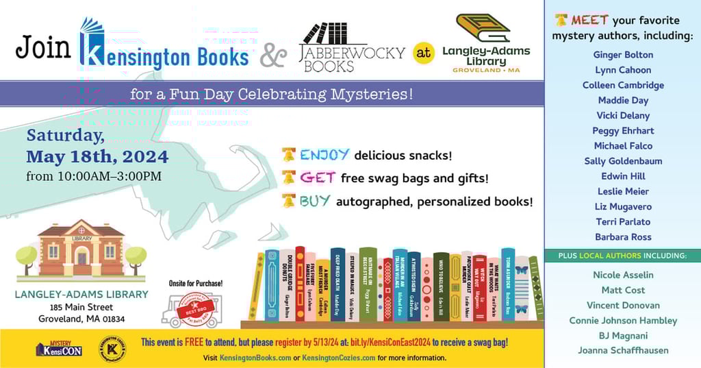Langley Adams Library, in collaboration with Kensington Publishing Corp and Jabberwocky Bookshop, will be hosting a Mystery Book event for residents and community members.