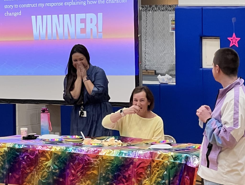 Students then played and laughed along as Principal Brenda Kelley participated in the “Nasty Nachos Game.”