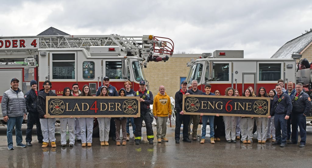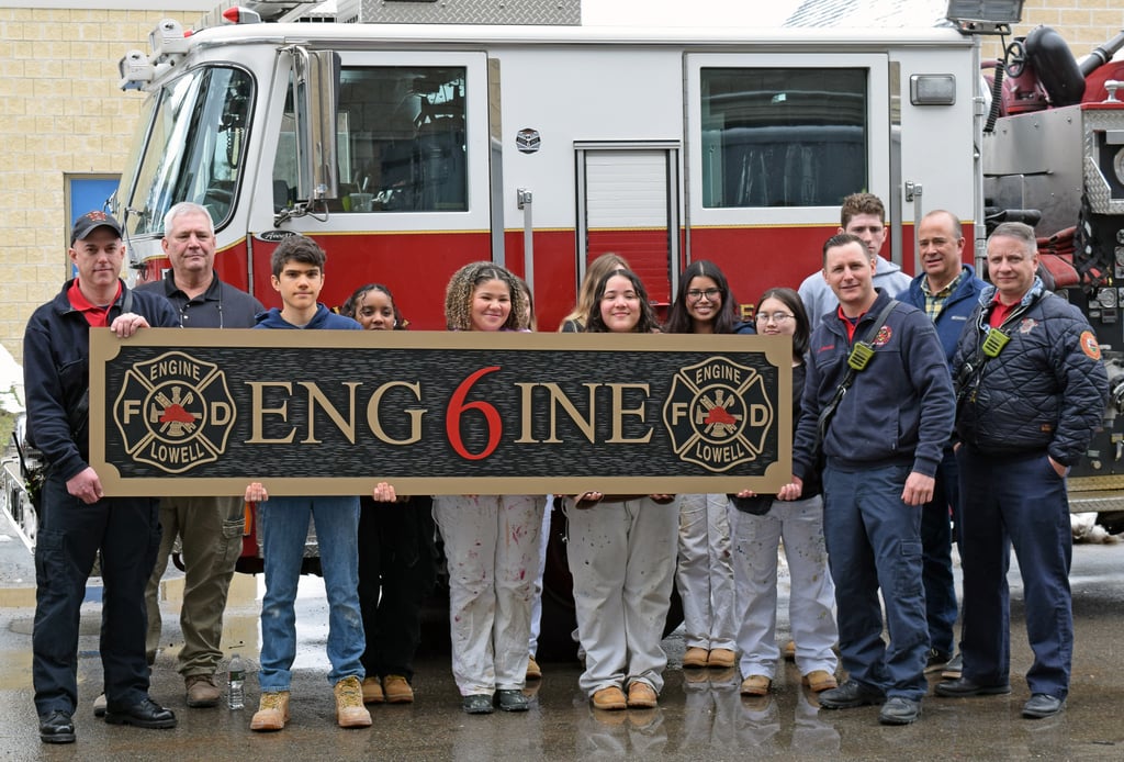 TYNGSBOROUGH — Superintendent Jill Davis is pleased to share that Greater Lowell Technical High School students from the Computer Aided Drafting and Design, Carpentry and Painting and Design programs combined their talents to create two new signs for the Lowell Fire Department’s West Sixth Street Fire Station.