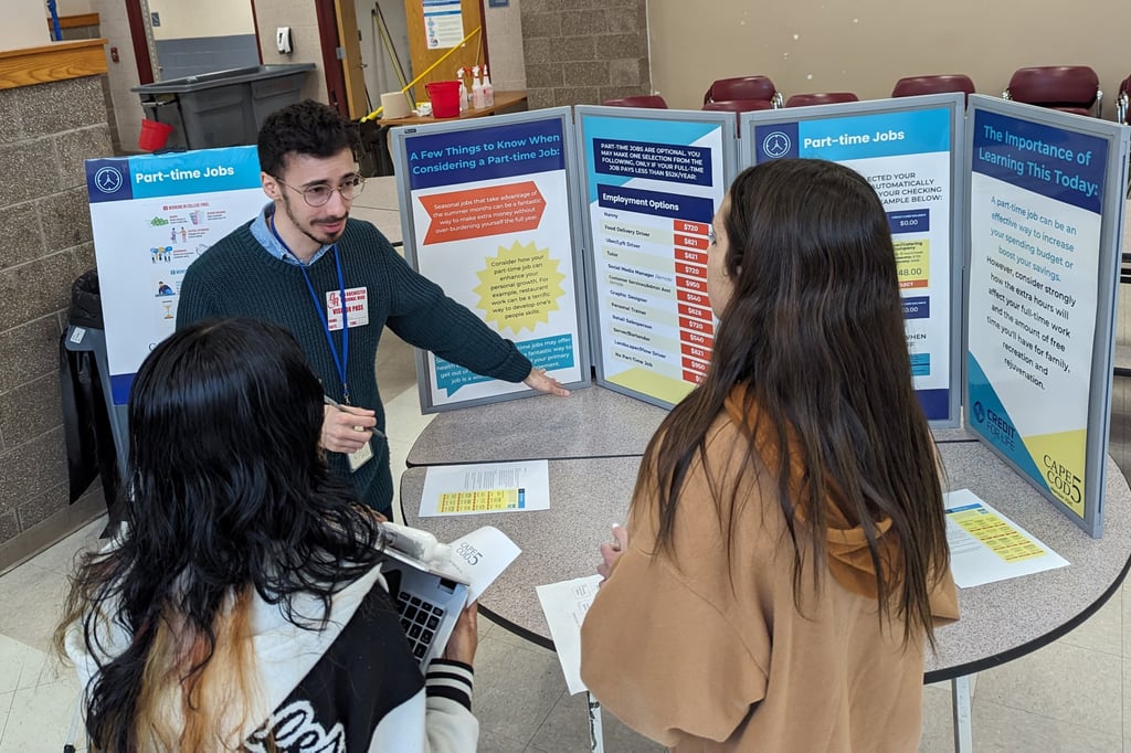 Prior to the event, students selected a career of interest. Based on the associated salary of their chosen occupation, students were tasked with budgeting real-life expenses during the fair, such as housing, transportation, education, insurance and more. They were given checking and savings accounts and a credit card. They were also hit with real-life pop-up scenarios along the way, such as their luggage being lost, expenses from their best friend’s wedding, saving money on insurance for safe driving, and receiving grant money for school.