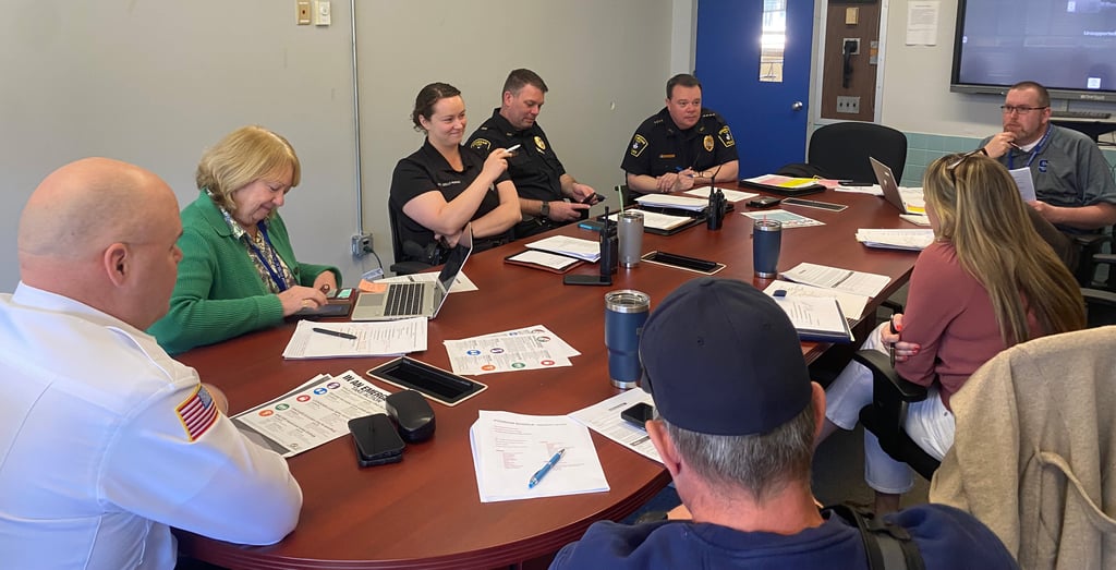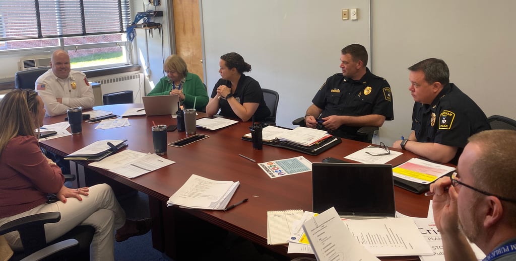 The goal of these monthly meetings is to strengthen the relationships between public safety personnel and the school district through collaboration, idea sharing, and discussion centered around being prepared for every kind of emergency situation.