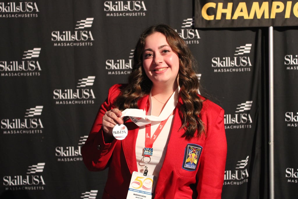 Russell Poor, a senior from Merrimac, earned silver in Baking and Pastry, while Maddie Katzen, a senior from Georgetown, earned silver for her Health Occupations Professional Portfolio. Annie Siliker, a senior from Newburyport, won bronze in Principles of Technology.