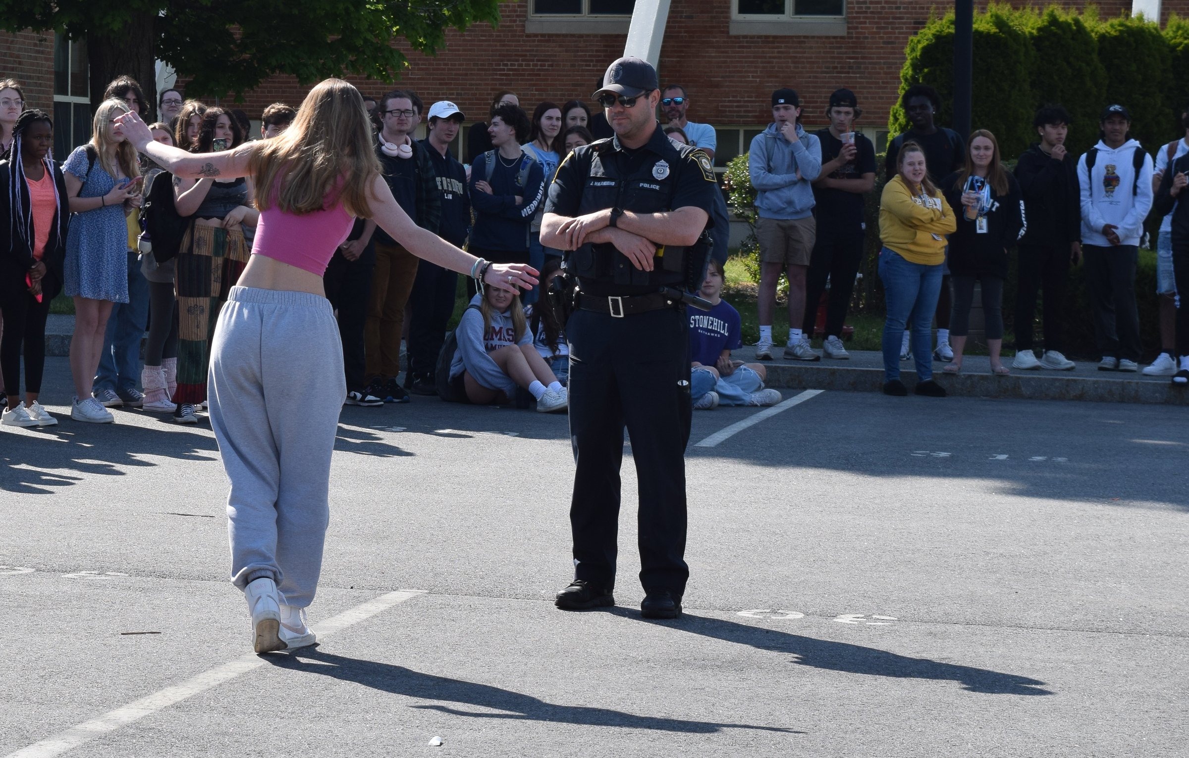 Dracut Police performed a field sobriety test on one of the students who portrayed a driver, and then arrested that student for operating under the influence and using a handheld device while driving.