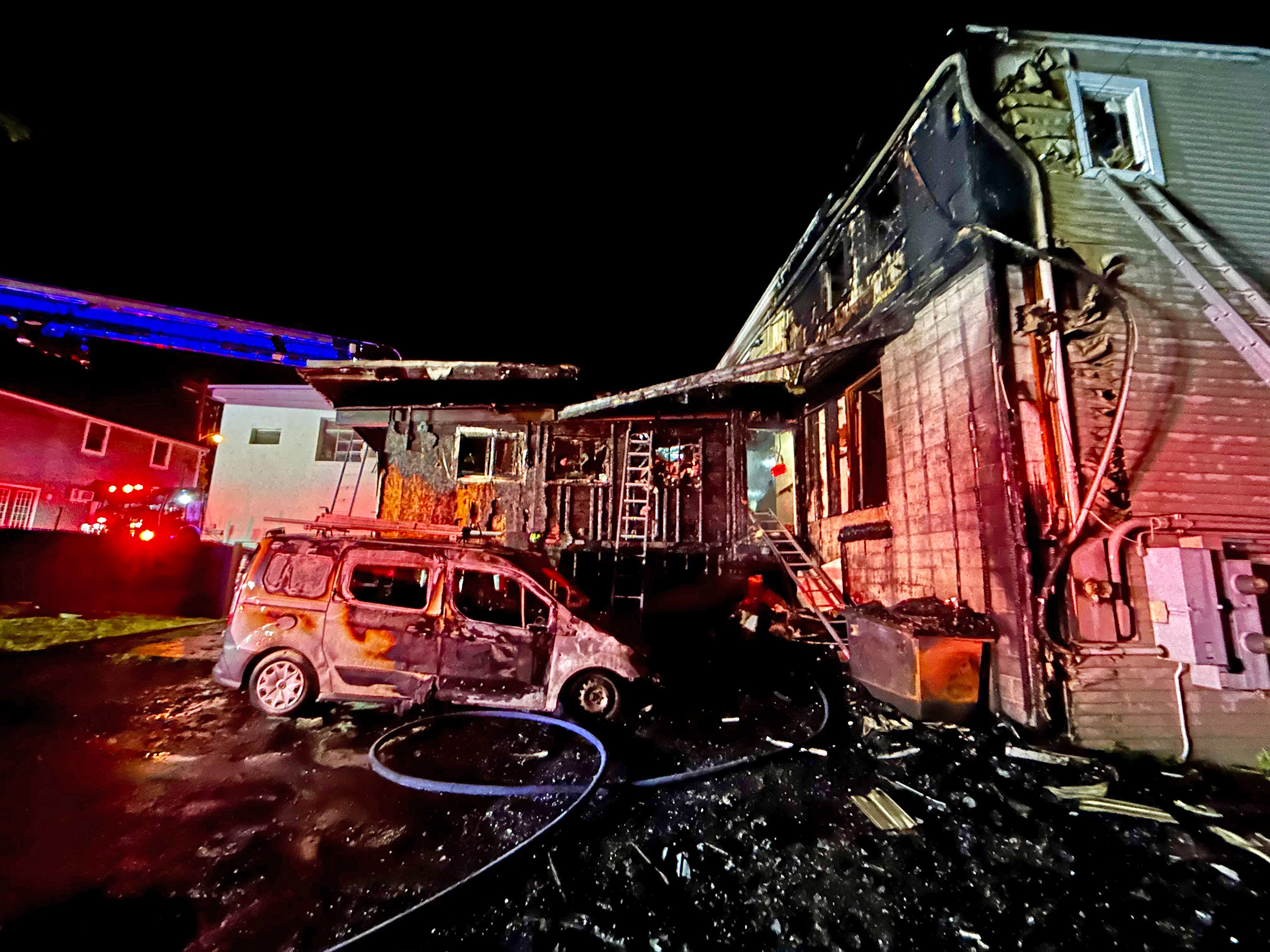 Firefighters rescued the two residents over ground ladders and then made an aggressive attack on the fire, which was brought under control by about 2:40 a.m.