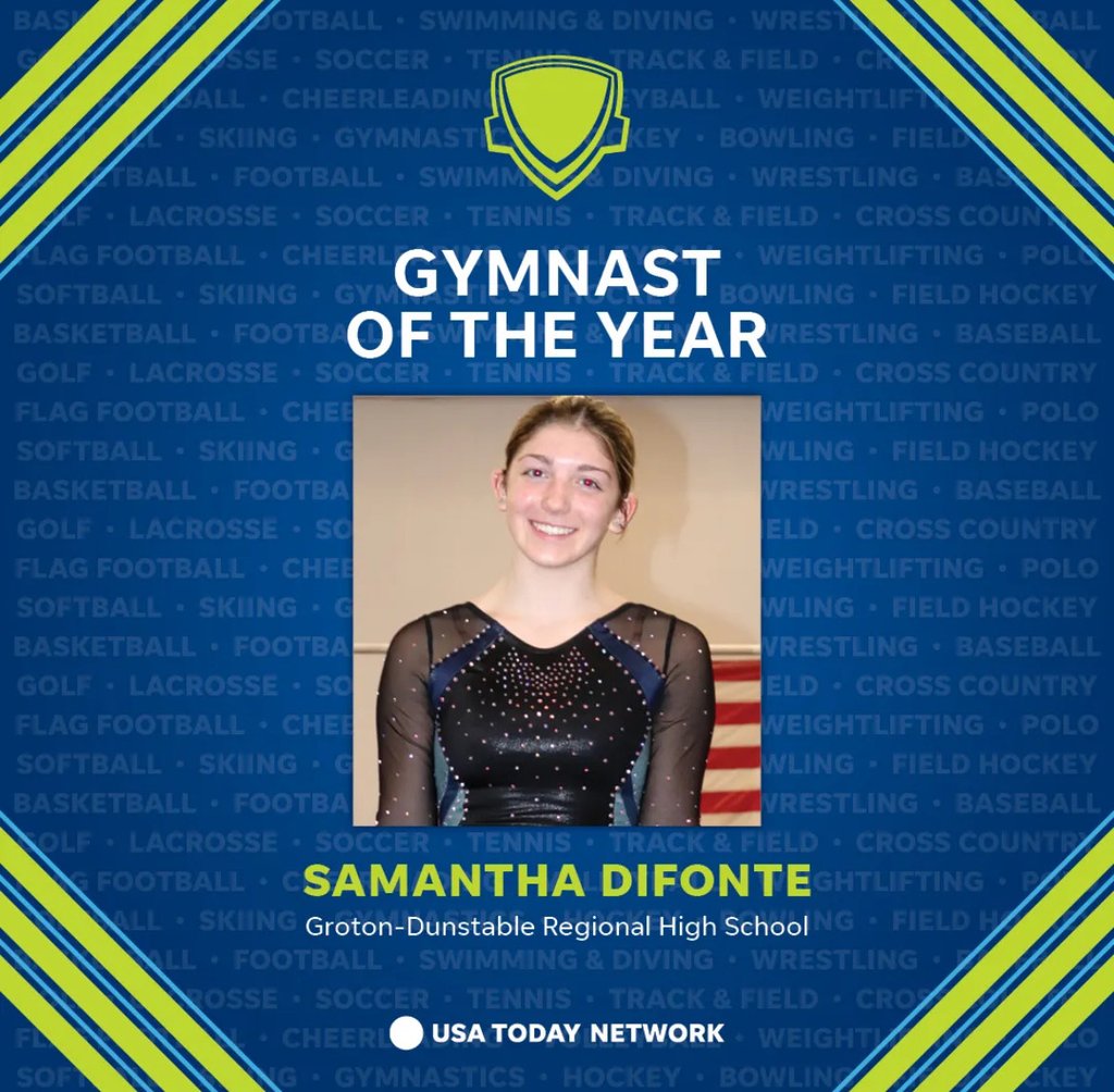 Samantha Difonte, a rising senior from Townsend, was recognized on Wednesday, June 26 during a ceremony at the Hanover Theater & Conservatory for the Performing Arts in Worcester. Difonte participates in the co-operative gymnastics program with Groton-Dunstable Regional High School.