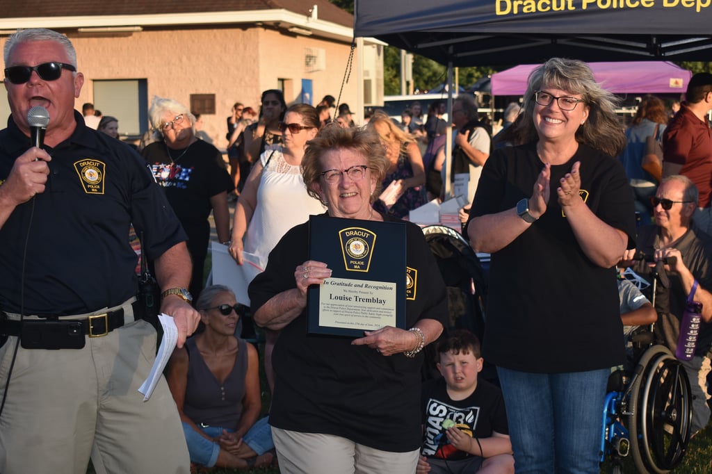 Dracut Police recognized Louise Tremblay, who has volunteered at Public Safety Night each year. This year she single-handedly raised more than $19,000 in donations to support the event.