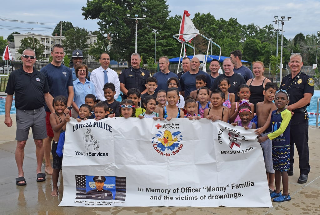“As we experience hotter more humid summers, it’s more important than ever that families can seek relief at our pools and that children know how to safely swim,” said DCR Commissioner Brian Arrigo. “We are proud to partner with the Lowell Police Department, the Officer Sean A. Collier Memorial Fund and the Massachusetts State Police to ensure that more kids in Lowell can learn this important life skill regardless of financial ability.”