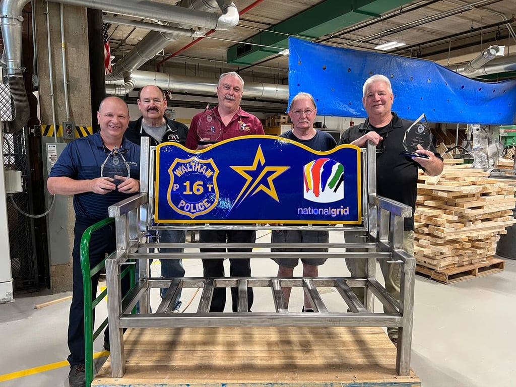 This year’s golf tournament will honor Waltham Police Officer Paul Tracey and National Grid worker Roderick Jackson, both of whom were killed in a Dec. 6 crash at a construction site in Waltham. The bench, created by students, will be displayed at the tournament and then donated to the Waltham Police Department.