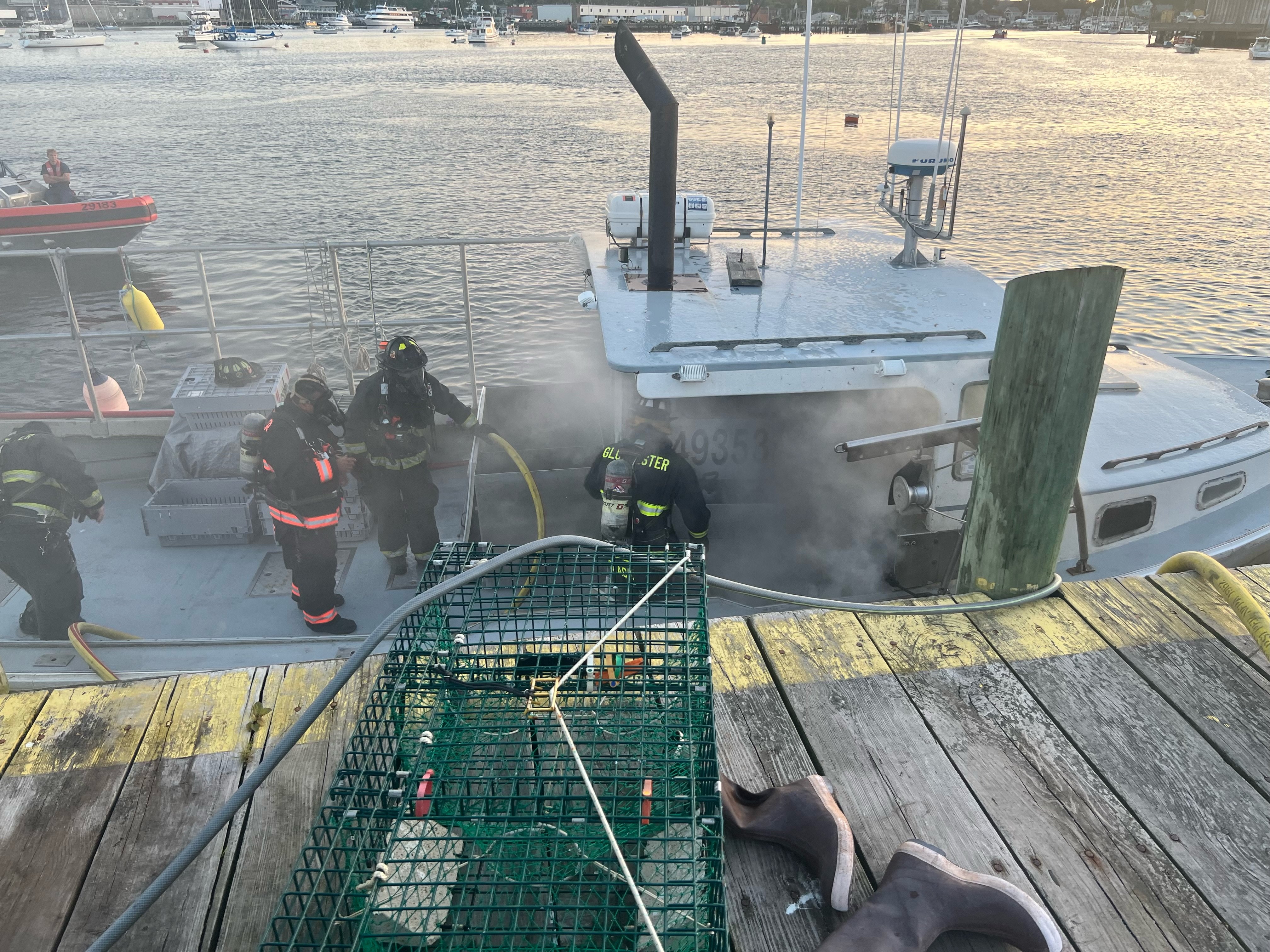On Thursday, at about 6:03 a.m., Gloucester Fire responded to Gloucester Marine Railways, 81 Rocky Neck Ave, for reports of a boat fire.