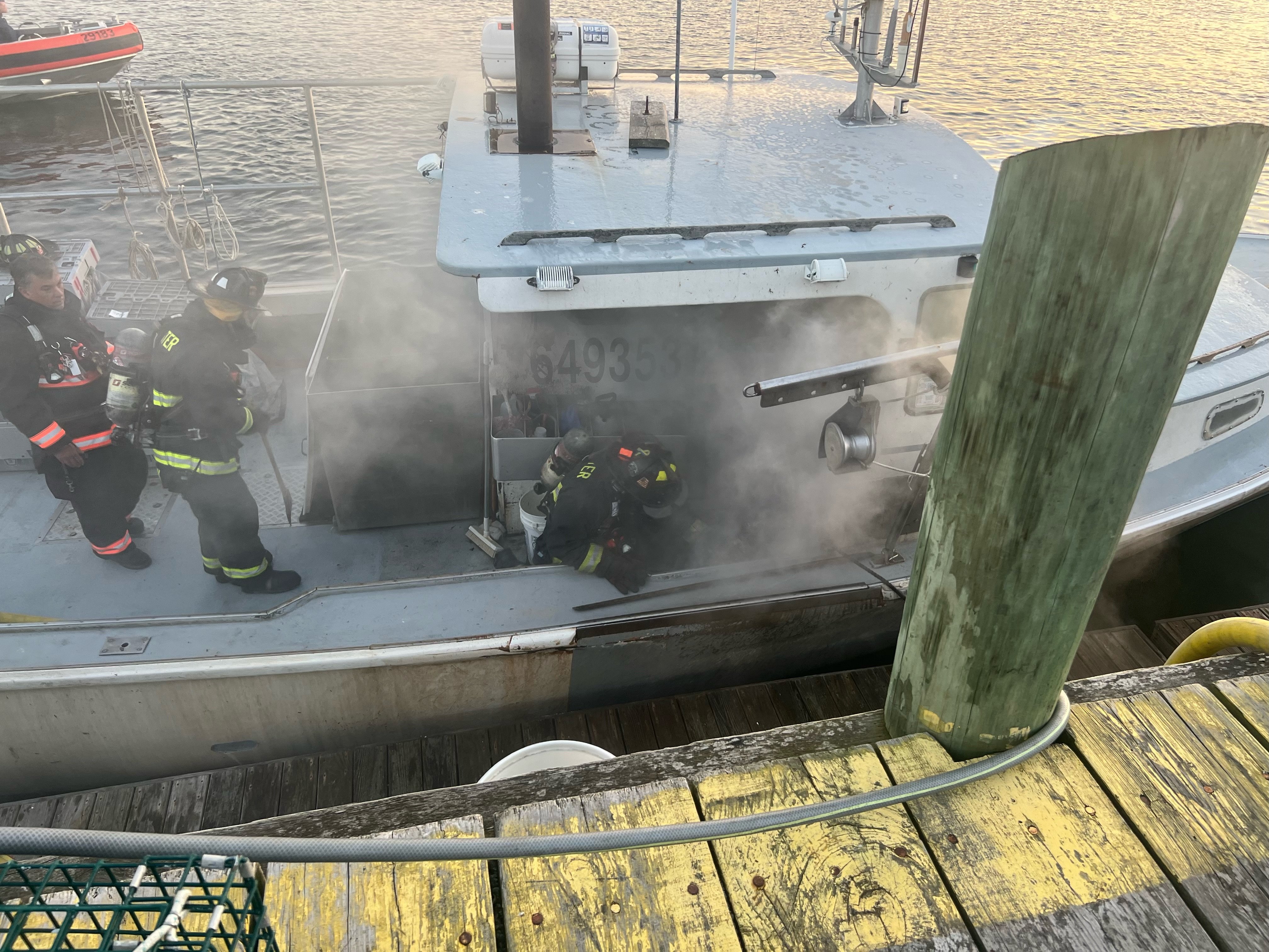 Upon arrival, crews observed heavy smoke coming from a 50-foot vessel and immediately began an aggressive attack to limit the fire’s spread.