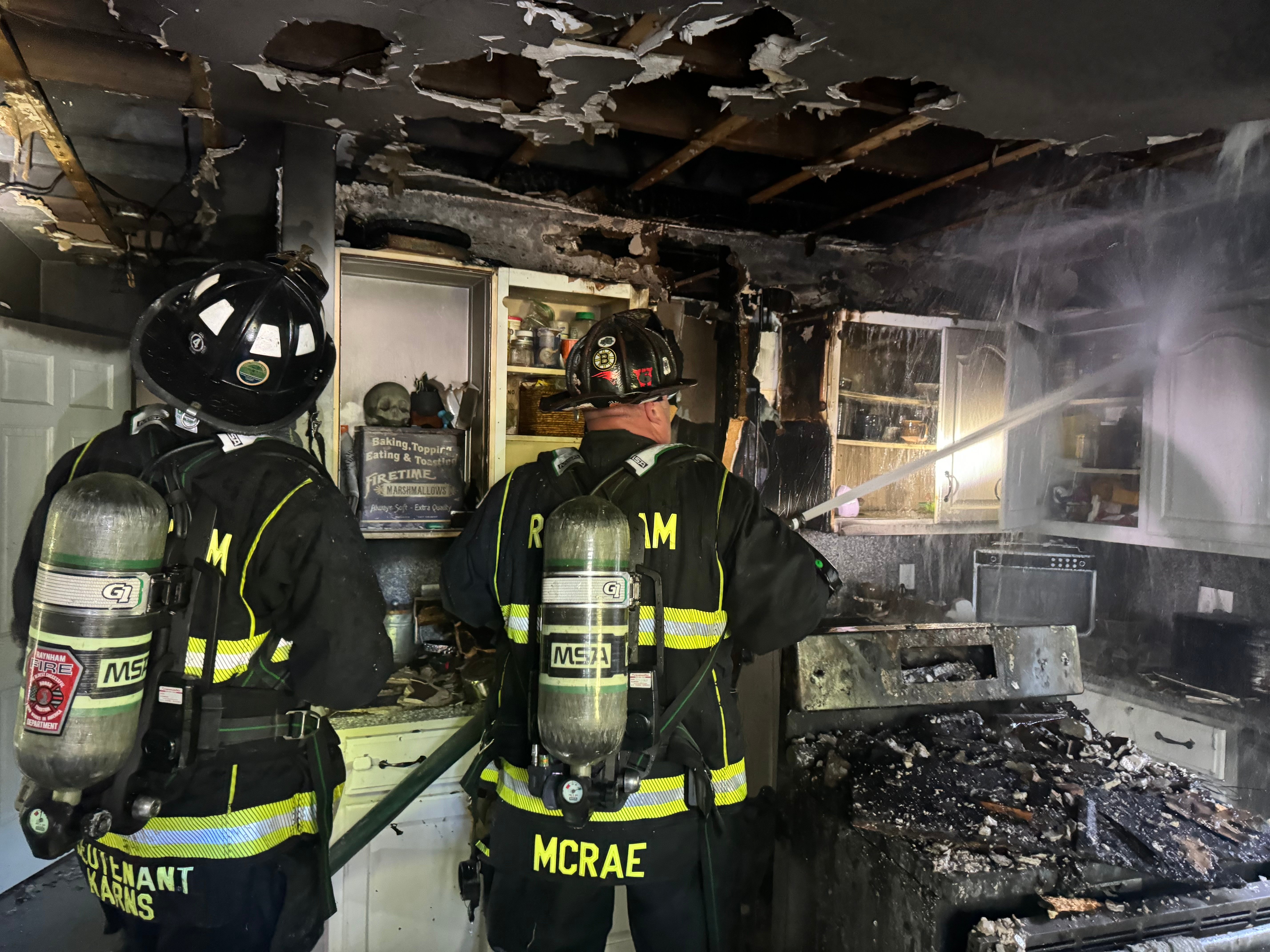 Upon arrival, firefighters observed smoke coming from the single-family home. The owner of the home, who had evacuated prior to firefighters’ arrival, reported that the fire started in the kitchen and that his dog was still inside the residence.