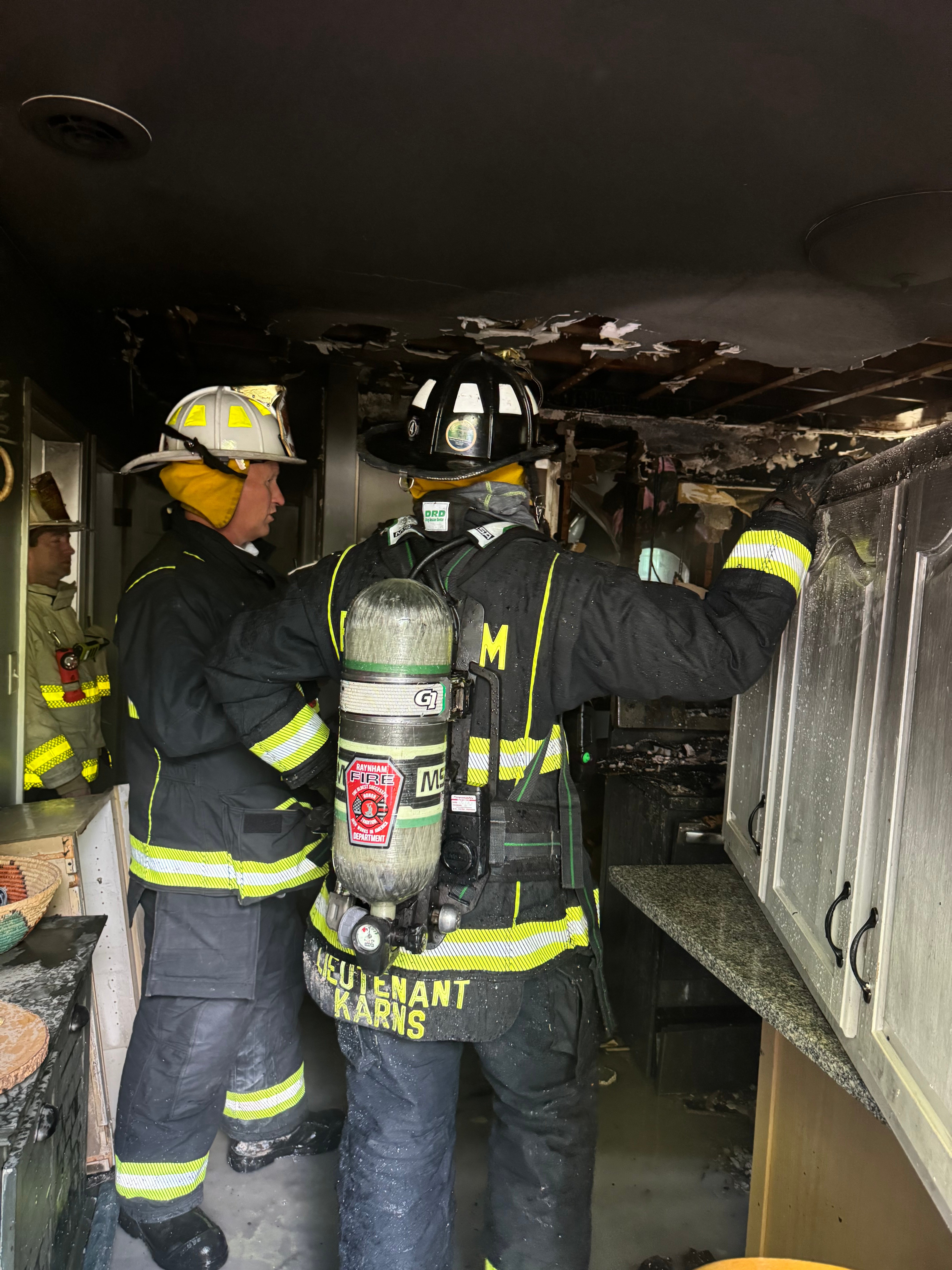 Crews immediately brought a hose to the side door of the house, where they were met with excessive heat and dense smoke. Firefighters were able to enter the home to quickly find and extinguish the bulk of the fire.