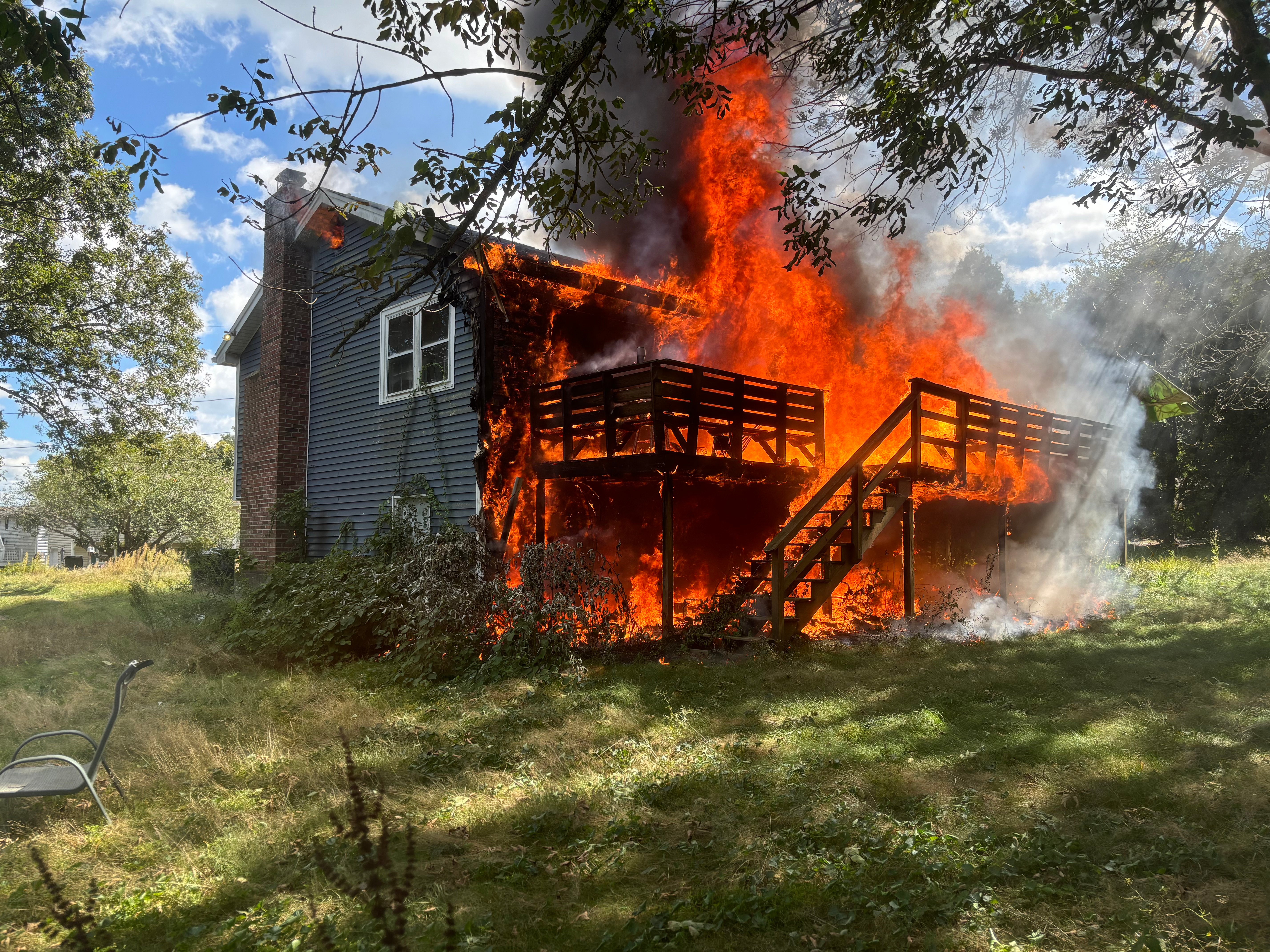 Crews arrived to find heavy fire showing from the attached deck in the rear of the raised ranch single-family home. Companies immediately initiated an exterior attack of the fire. Soon after firefighters arrived, the flames spread to the residence’s attic and kitchen. Crews extinguished the bulk of the fire from the outside, then proceeded with an interior attack, stretching hose lines into the kitchen.