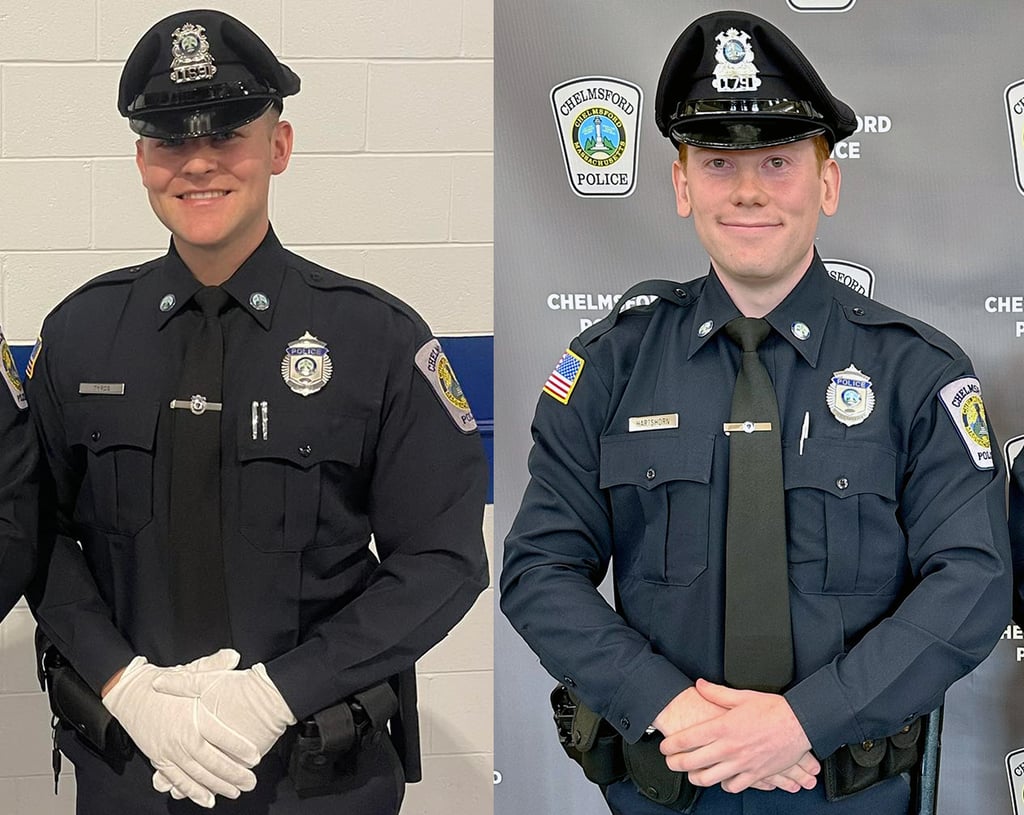 Officer Tyros has been with the Chelmsford Police Department for about two years. Officer Hartshorn joined Chelmsford Police as a dispatcher in 2023, and became a sworn officer in May of 2024.