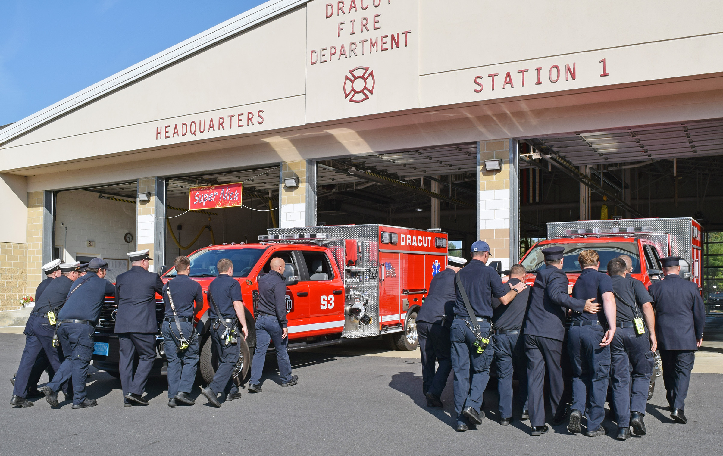 DRACUT — Chief Richard Patterson is pleased to report that the Dracut Fire Department held a pushing in ceremony to christen two new fire trucks that were recently purchased by the Town of Dracut.
