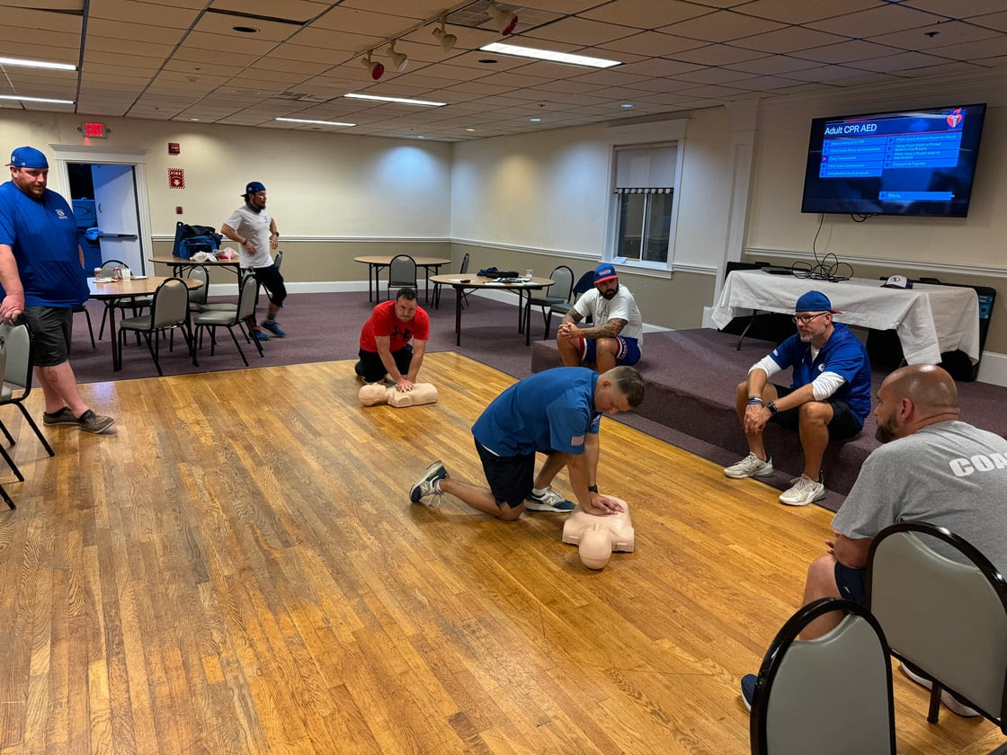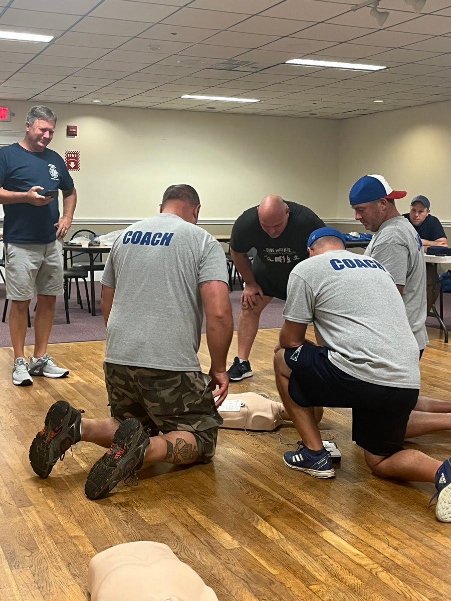 The Raynham Fire Department has assisted the Raynham Giants Youth Football league in annual CPR training for over a decade. The league mandates its coaches to be CPR and AED trained, certified and recertified, to ensure the safest practice for the young athletes.