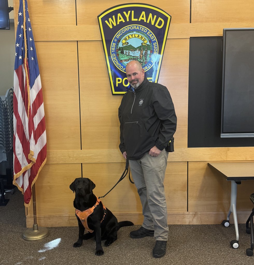 “We are excited about the newest addition to our Department, Archie the Comfort Dog,” said Chief Burman. “Having this comfort dog shows our commitment to community policing. His calming presence will not only help the students at our Wayland schools but the town’s residents as we conduct our police work.”