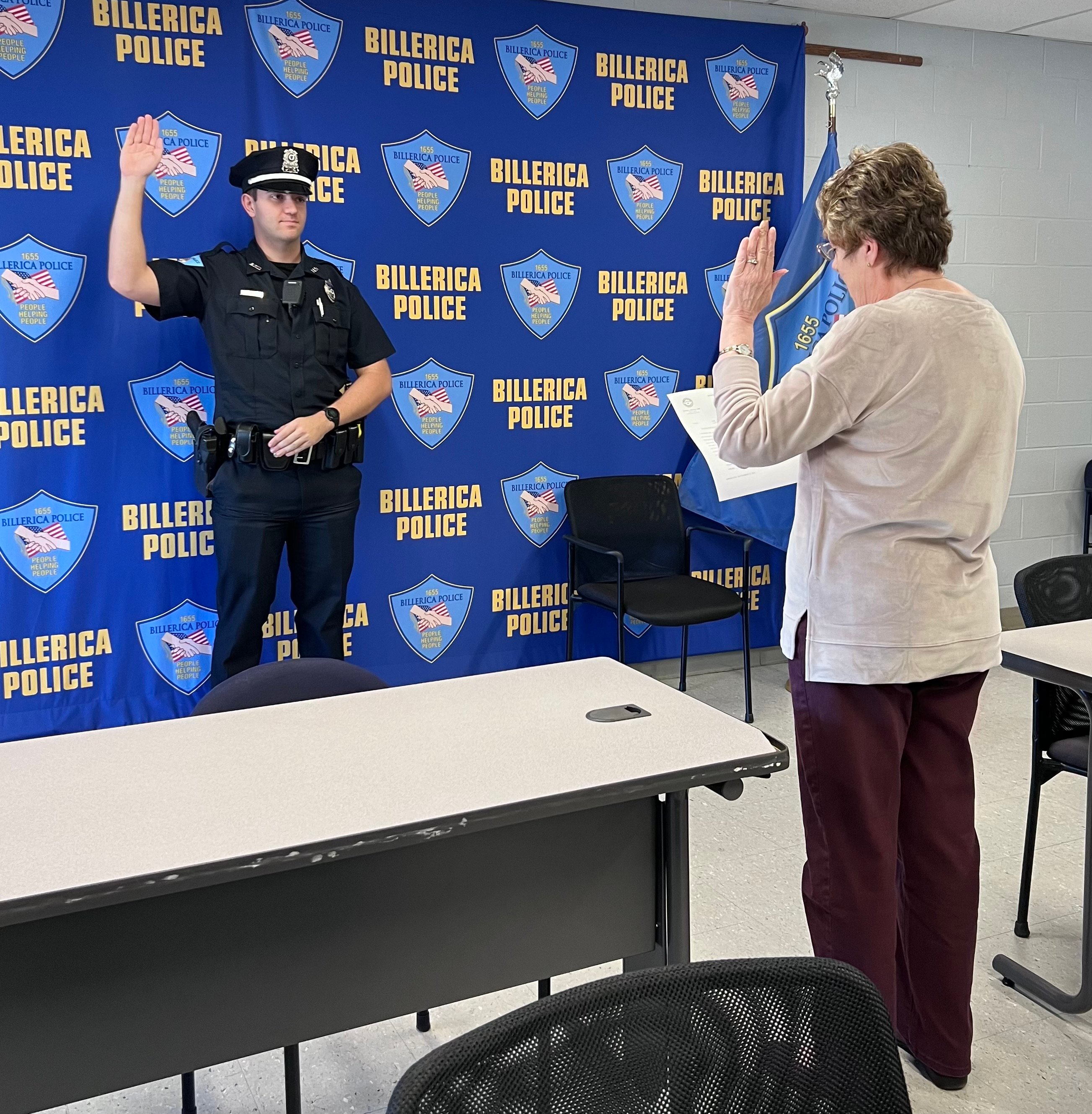 Officer Robert Lee, of Billerica, graduated from the Fitchburg State University Police Academy on Sept. 13, and was sworn in Friday by Town Clerk Donna McCoy.