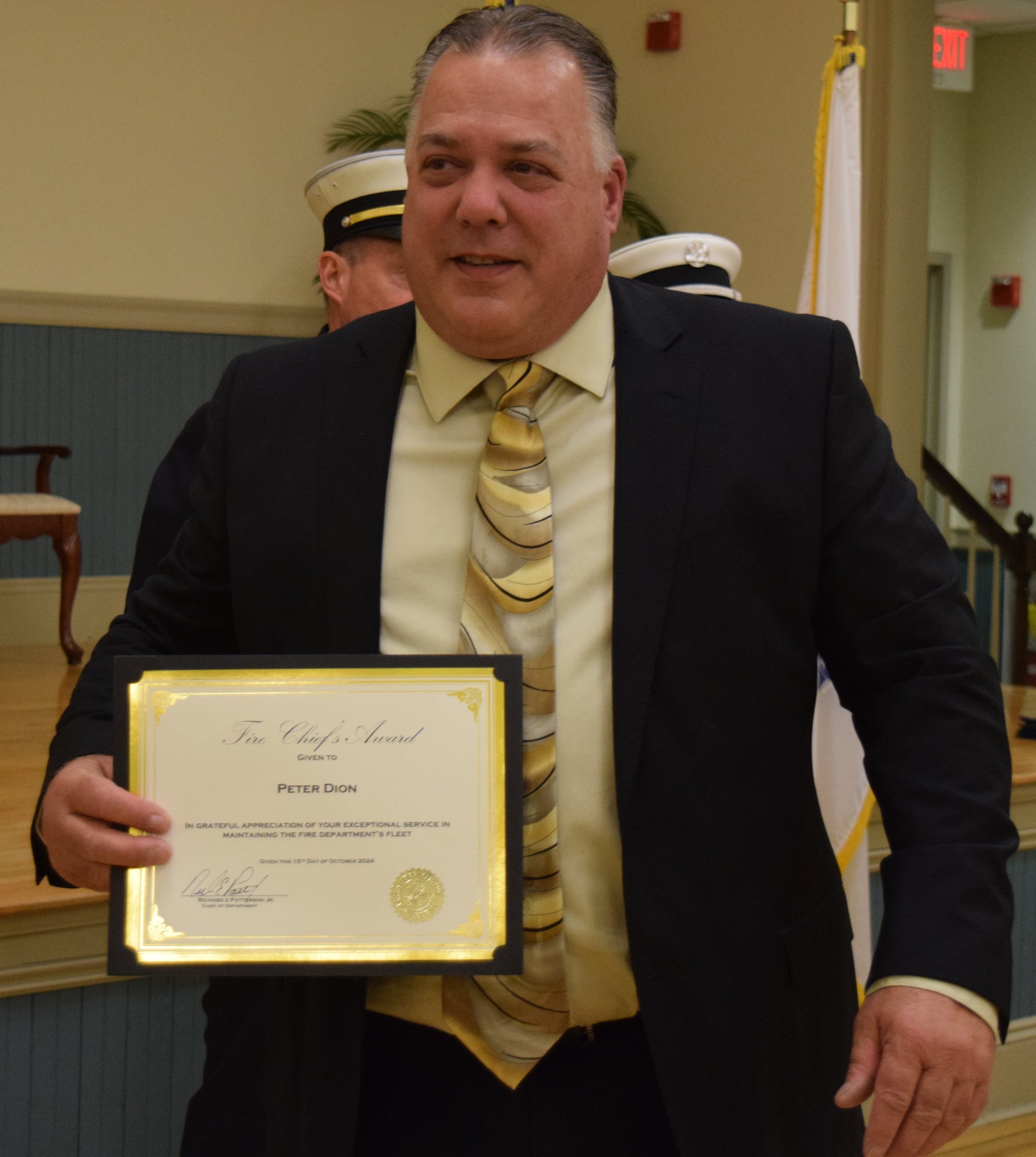 The Chief’s Award, presented at the discretion of Chief Patterson, was presented to the department’s mechanic, Peter Dion, who is responsible for ensuring all Dracut Fire Department vehicles are ready and operating at any given moment.