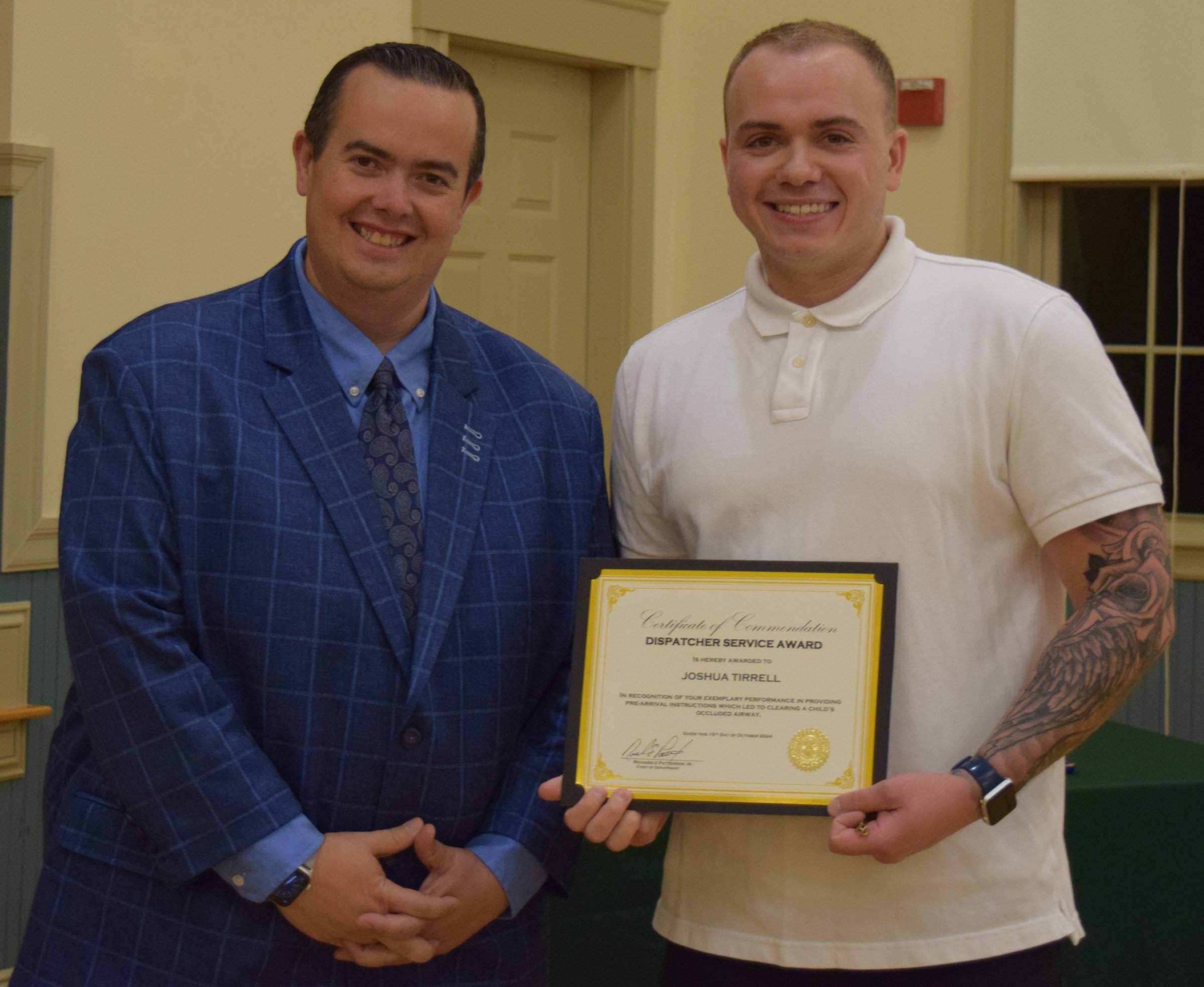 “Every day, the members of your fire department give nothing short of 100%. They face the challenges presented to them day in and day out with dedication and professionalism,” said Chief Patterson. “I am proud to be a part of such an outstanding group of individuals. They all deserve recognition.”