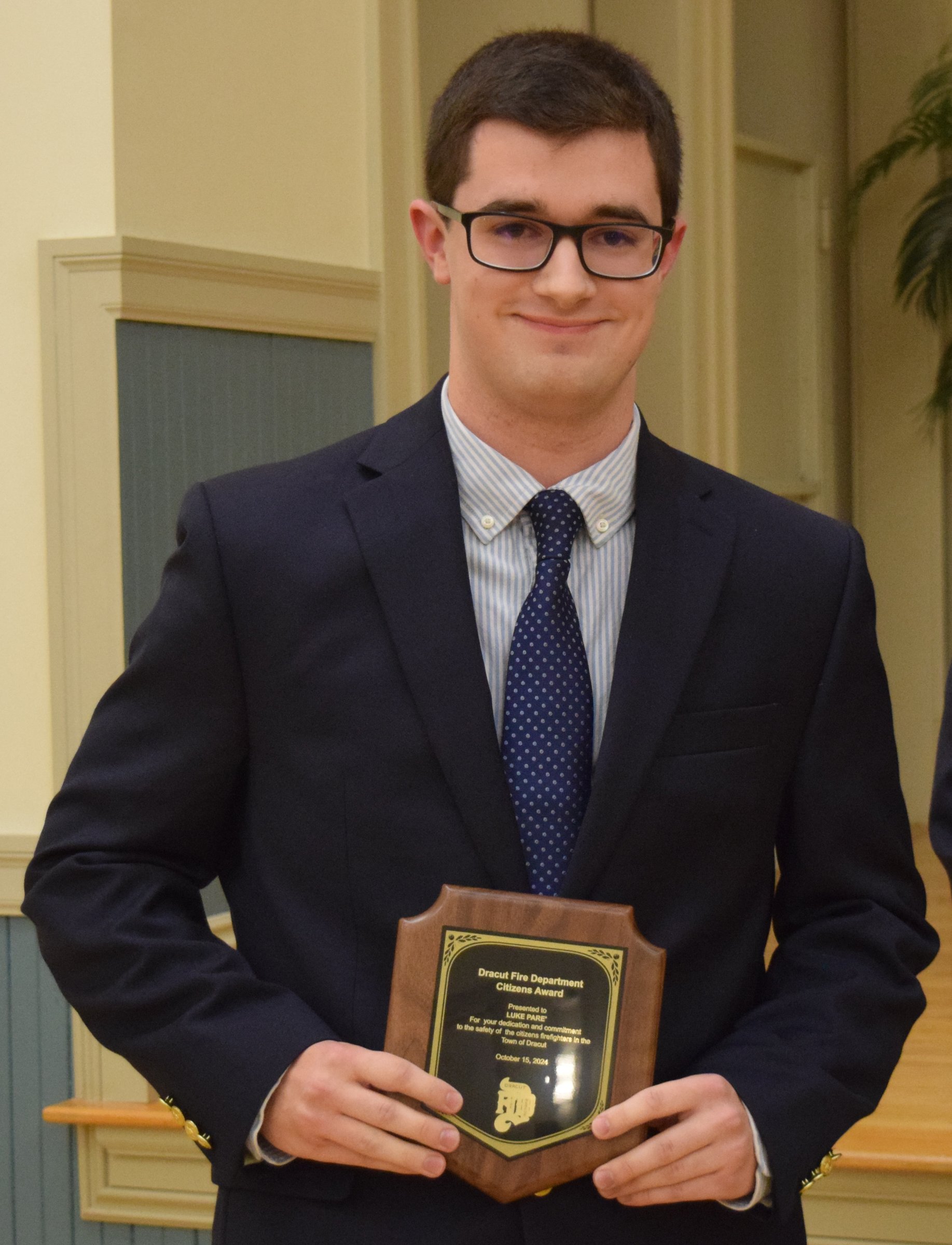 The first award to be presented was the Louise Tremblay Community Service Award, named after one of the community’s most active residents. This year’s award went to Eagle Scout Luke Pare, who proposed, presented, and then executed a major project to color code the town’s fire hydrants so that the color of the hydrants quickly informs firefighters of the flow rate the hydrants offer.