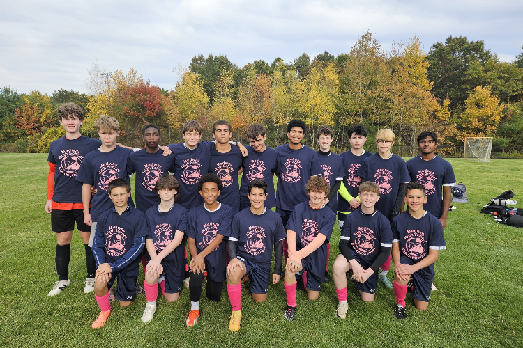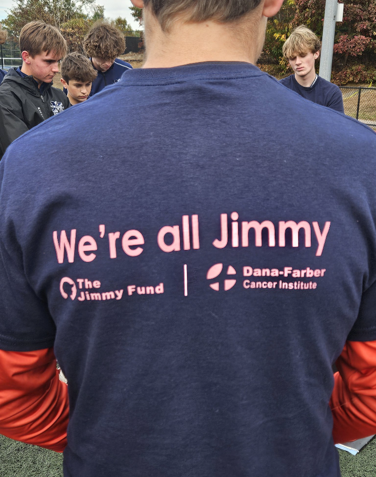 The MHS varsity and JV soccer teams purchased t-shirts designed by McMahon to wear during a series of games to support cancer research through The Jimmy Fund. Spectators and family members showed their support by also purchasing the shirts.