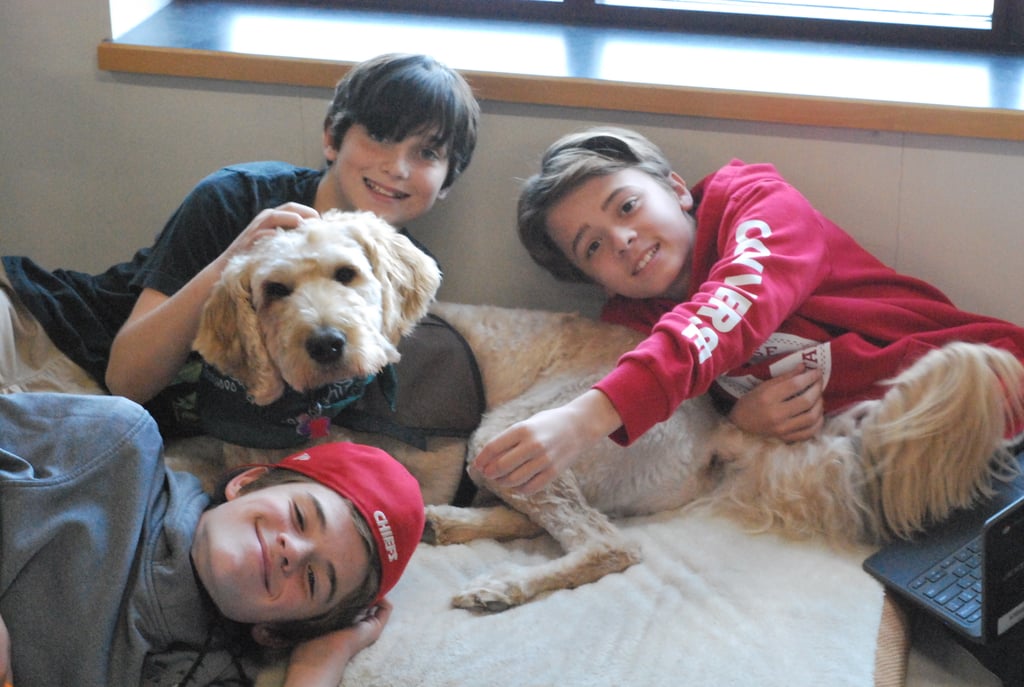 Samson, a 5-year-old allergy-friendly Labradoodle, brings two years of experience volunteering in hospital and educational settings to his new role as the 7-1 team therapy dog in Dr. Karen-Marie Scolforo’s English Language Arts classroom.