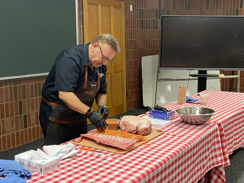 Chef Uliss’ specialty is in BBQ. Having won 80 national championships, he was the perfect person to show students how to make a dry rub and how to remove the membrane from St. Louis ribs.